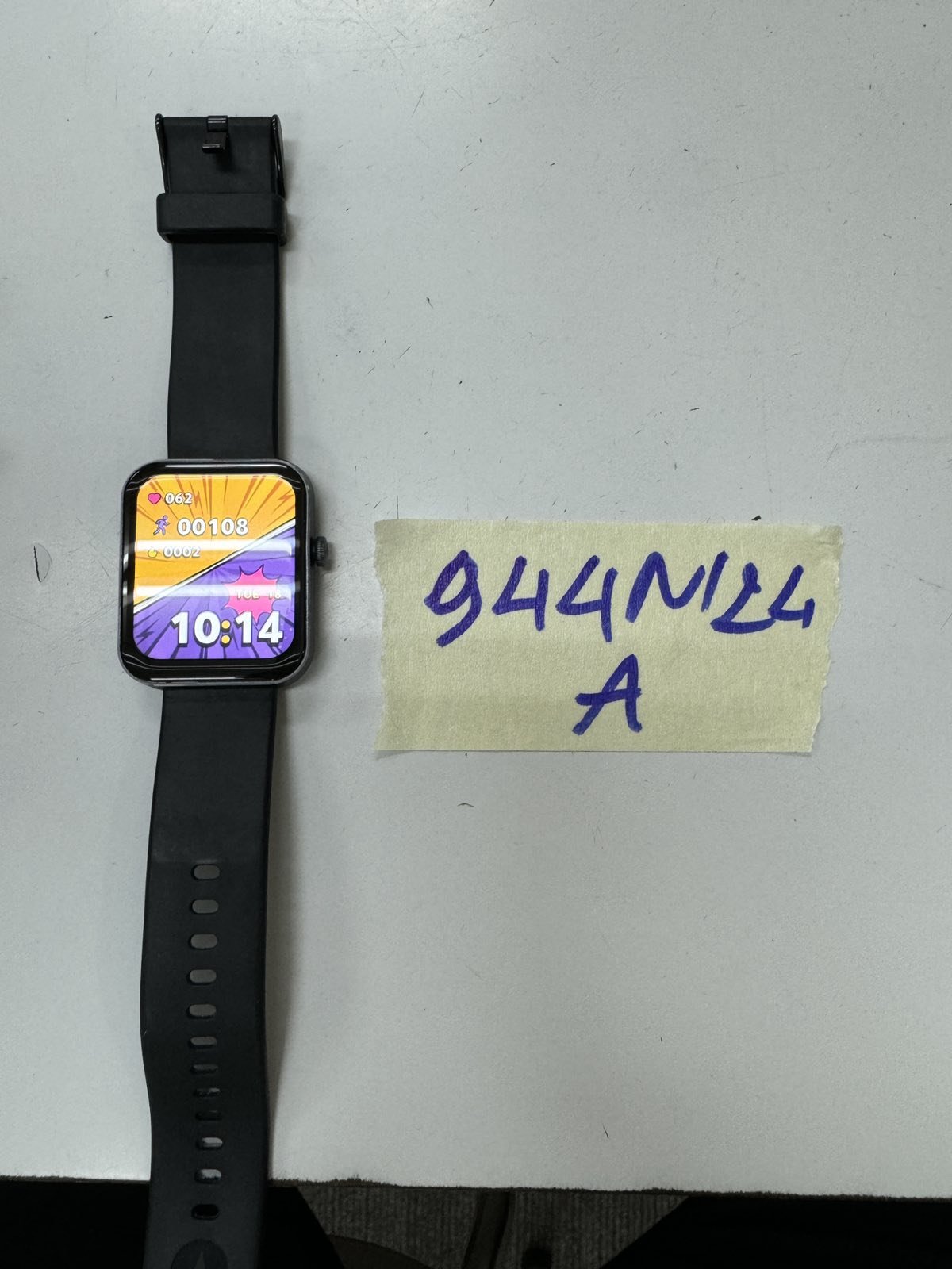 Ngày tiếp nhận: 18/6/2024 Mã hồ sơ: 944N2024A Mô tả: 01 đồng hồ đeo tay điện tử có logo "boAt" mặt vuông và dây nhựa màu đen. |