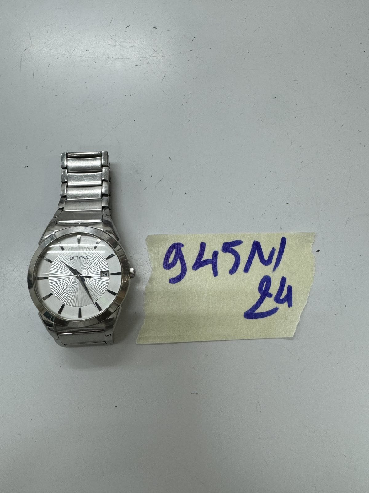Ngày tiếp nhận: 18/6/2024 Mã hồ sơ: 945N2024 Mô tả: 01 đồng hồ kim loại màu trắng, mặt tròn có dòng chữ BULOVA đã qua sử dụng. |