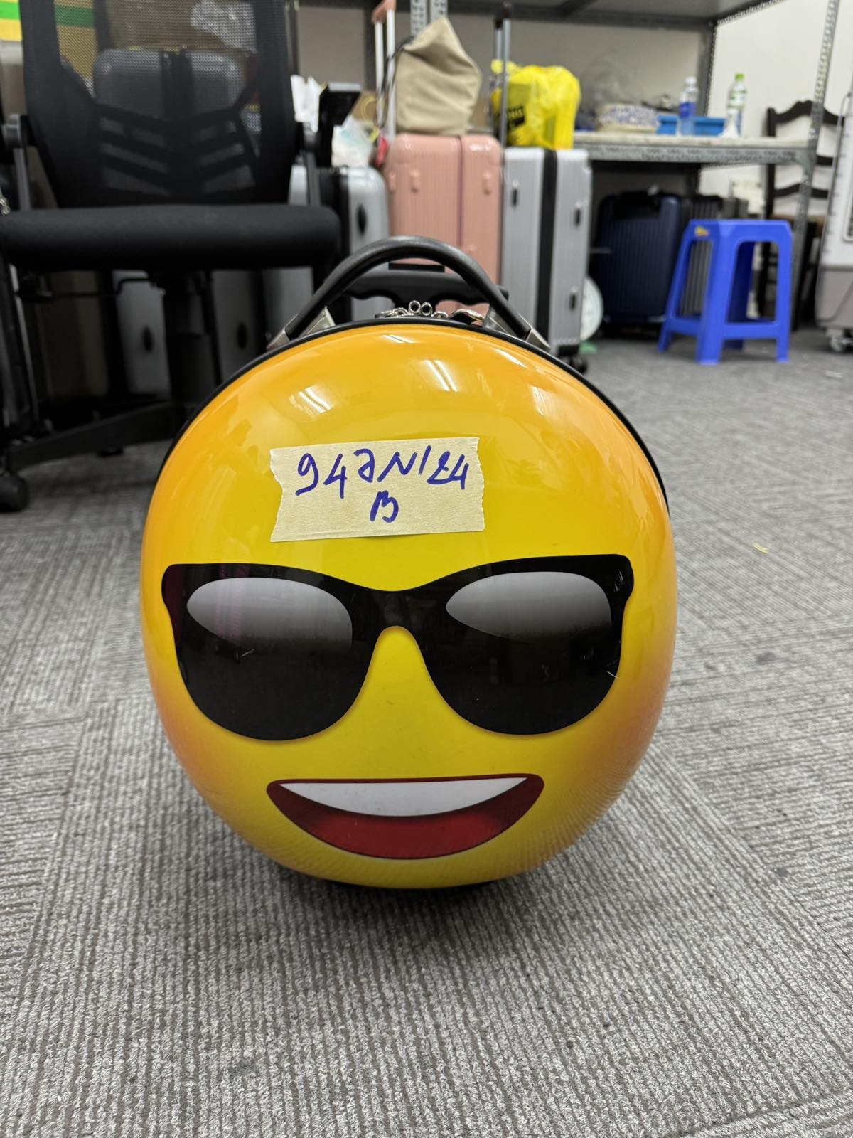 Ngày tiếp nhận: 18/6/2024 Mã hồ sơ: 947N2024B Mô tả: 01 vali có hình mặt cười màu vàng đeo kính râm, mặt sau có chữ HEYS bên trong gồm một số vật dụng cá nhân đã qua sử dụng. |