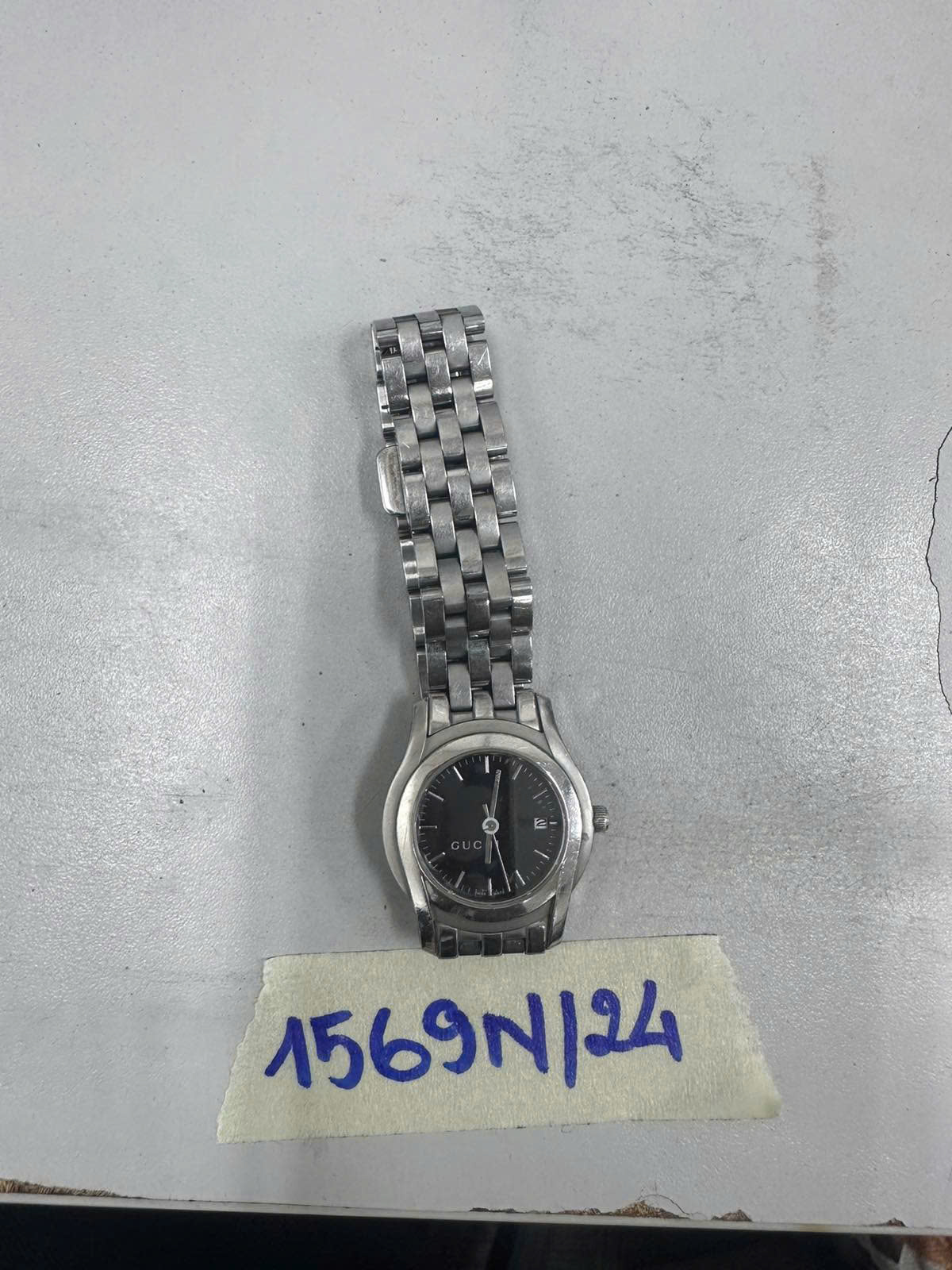 Ngày tiếp nhận: 17/9/2024 Mã hồ sơ: 1569N2024 Mô tả: 01 đồng hồ màu bạc có chữ GUCCI mặt tròn màu đen,dây đeo kim loại màu bạc. |