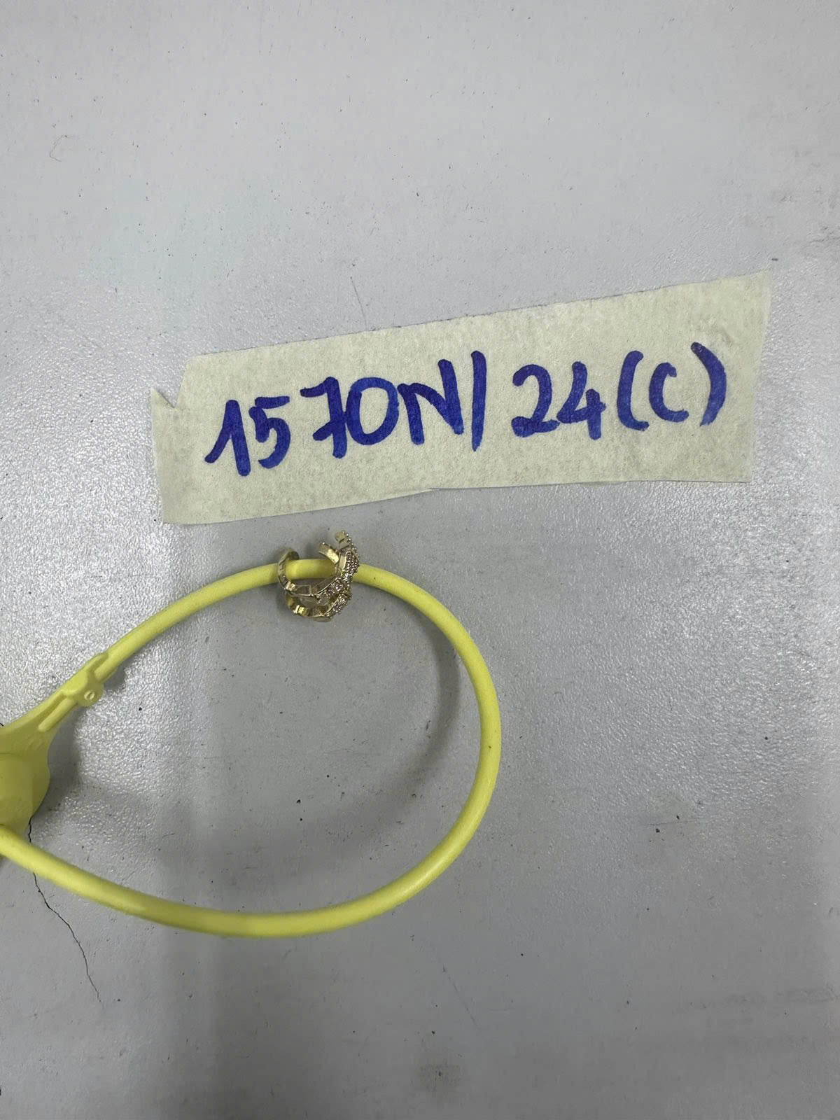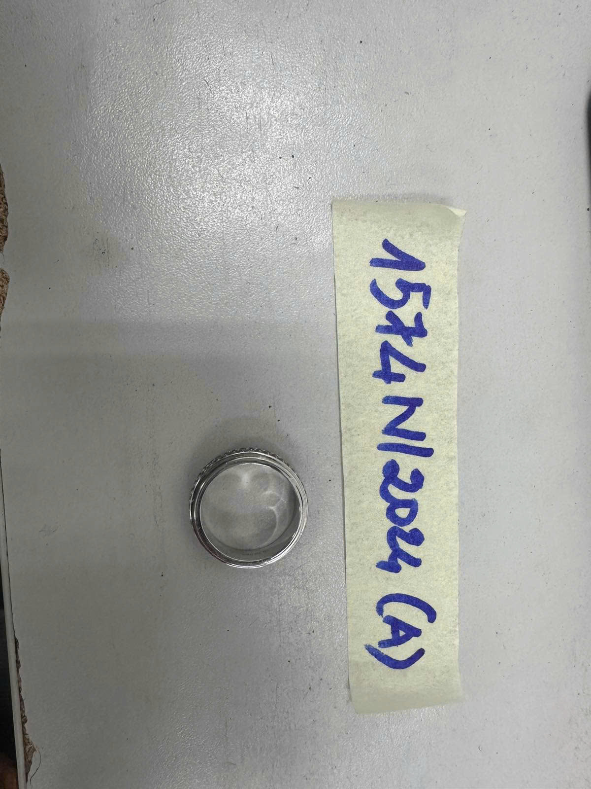 Ngày tiếp nhận: 17/9/2024 Mã hồ sơ: 1574N2024A Mô tả: 01 nhẫn tròn bằng kim loại màu bạc xung quanh nhẫn có đính hạt. |