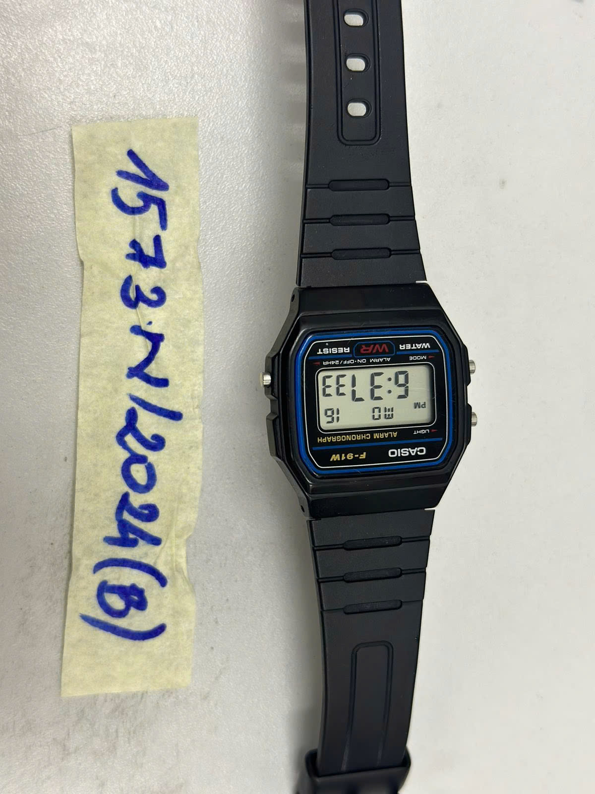 Ngày tiếp nhận: 17/9/2024 Mã hồ sơ: 1573N2024B Mô tả: 01 đồng hồ màu đen mặt chữ nhật có chữ CASIO dây đeo nhựa màu đen. |