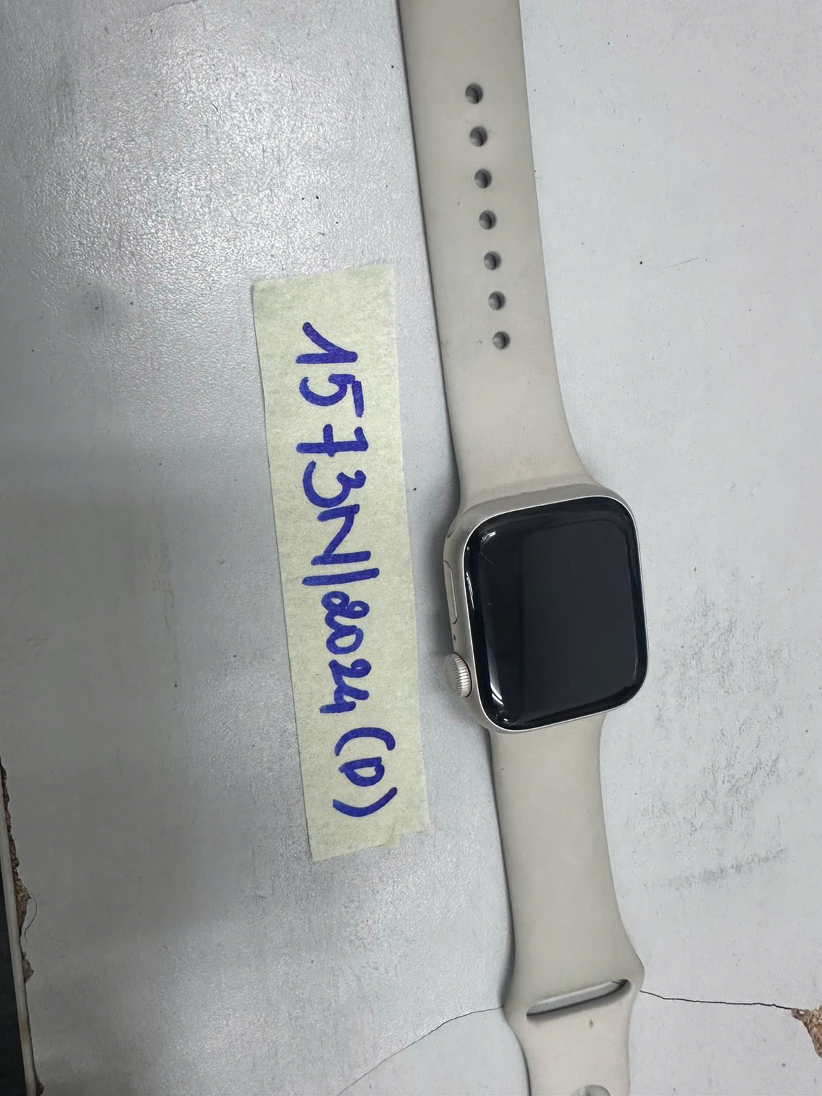 Ngày tiếp nhận: 17/9/2024 Mã hồ sơ: 1573N2024D Mô tả: 01 đồng hồ màu trắng mặt hình chữ nhật có logo chữ APPLE WATCH SERIES 7. |