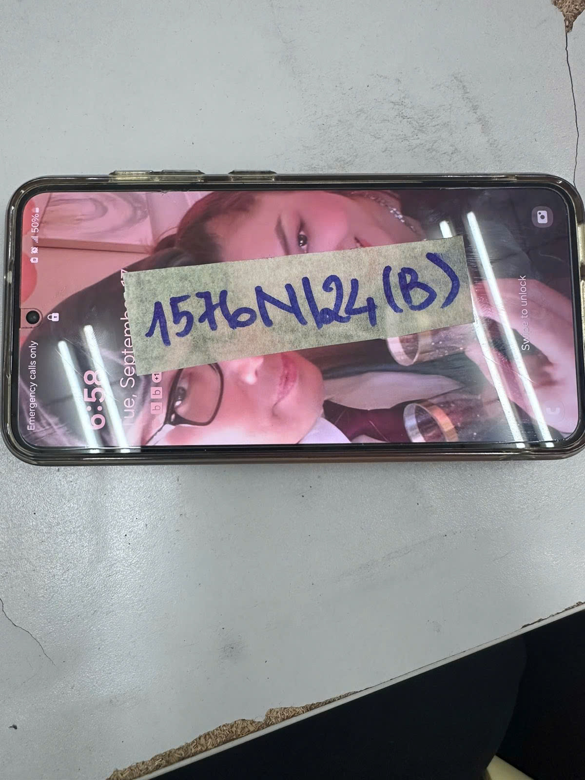 Ngày tiếp nhận: 17/9/2024 Mã hồ sơ: 1576N2024B Mô tả: 01 điện thoại SAMSUNG mặt sau màu xám ốp lưng trong suốt. |