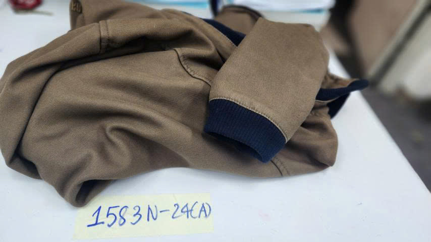 Ngày tiếp nhận: 18/9/2024 Mã hồ sơ: 1583N2024A Mô tả: 01 áo khoác vải màu nâu có chữ PTFJEANS. |