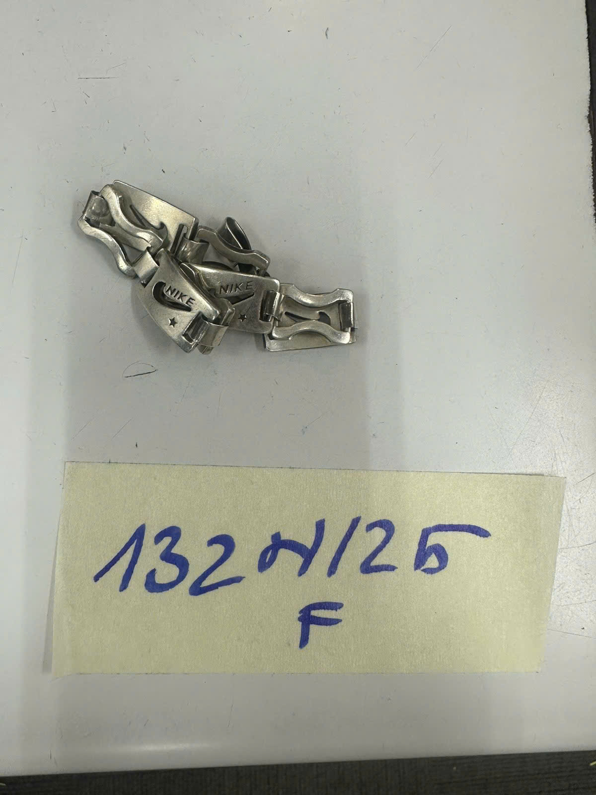 Ngày tiếp nhận: 18/01/2025 Mã hồ sơ: 132N2025F Mô tả: 01 Dây kim loại màu bạc có chữ "NIKE". |