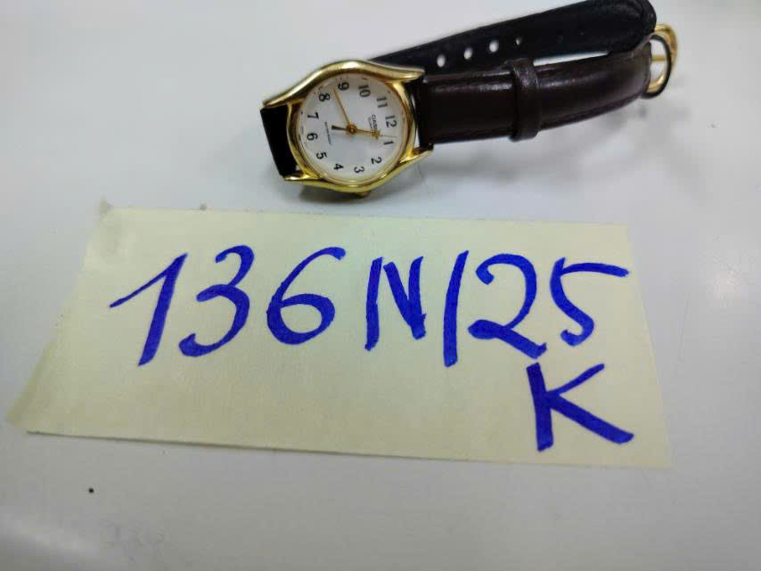 Ngày tiếp nhận: 19/01/2025 Mã hồ sơ: 136N2025K Mô tả: 01 đồng hồ mặt tròn, viền vàng dây màu nâu, có chữ " CASIO". |