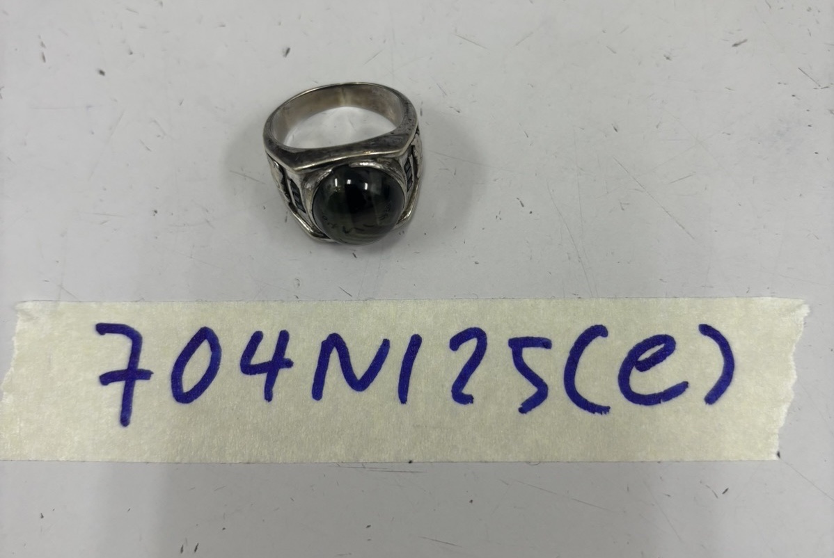 Ngày tiếp nhận: 18/4/2025 Mã hồ sơ: 704N2025C Mô tả: 01 Nhẫn nam màu trắng có hột đính màu đen. |