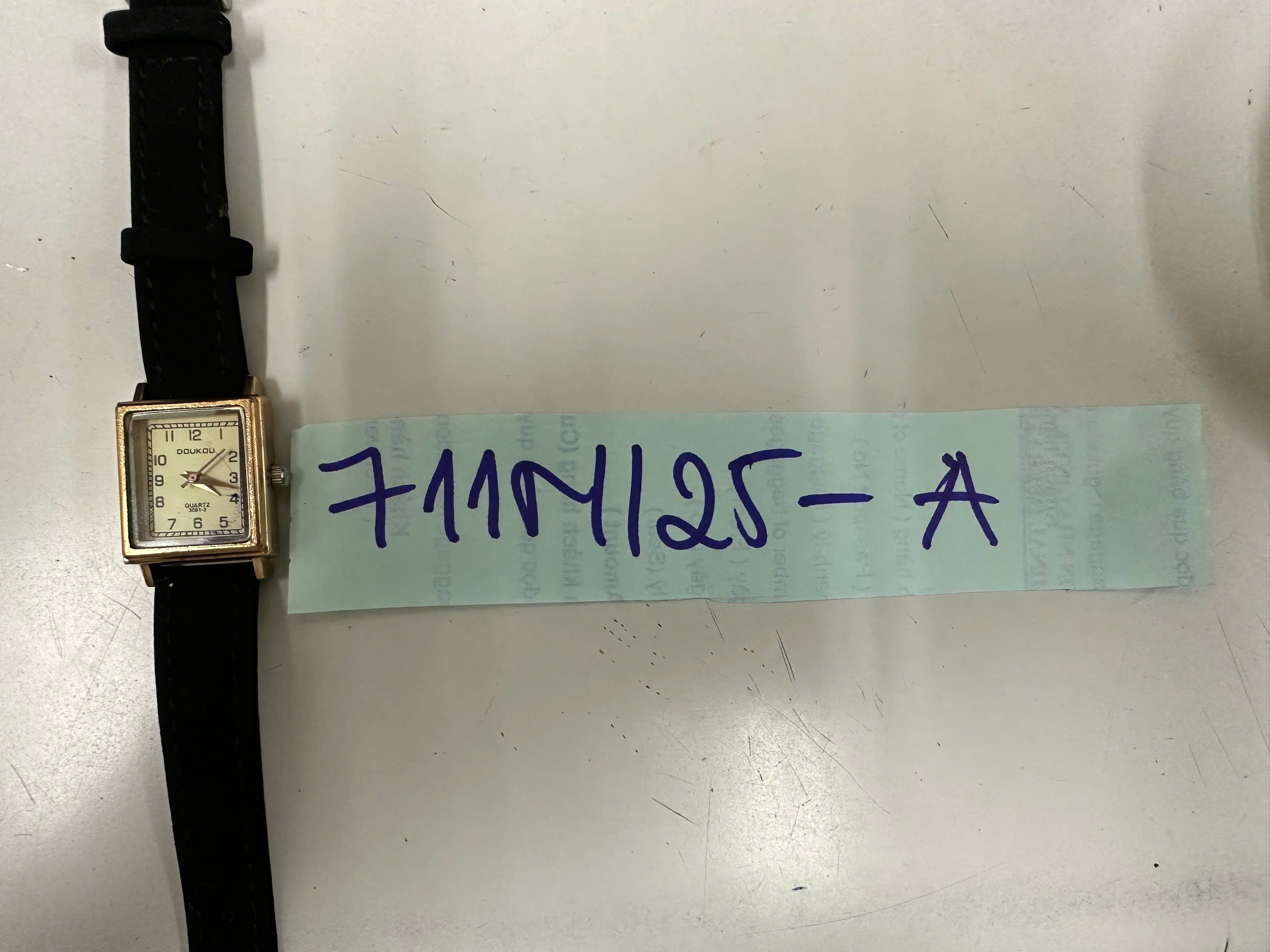 Ngày tiếp nhận: 19/4/2025 Mã hồ sơ: 711N2025A Mô tả: 01 Đồng hồ DOU KOU mặt chữ nhật dây đeo da màu đen. |
