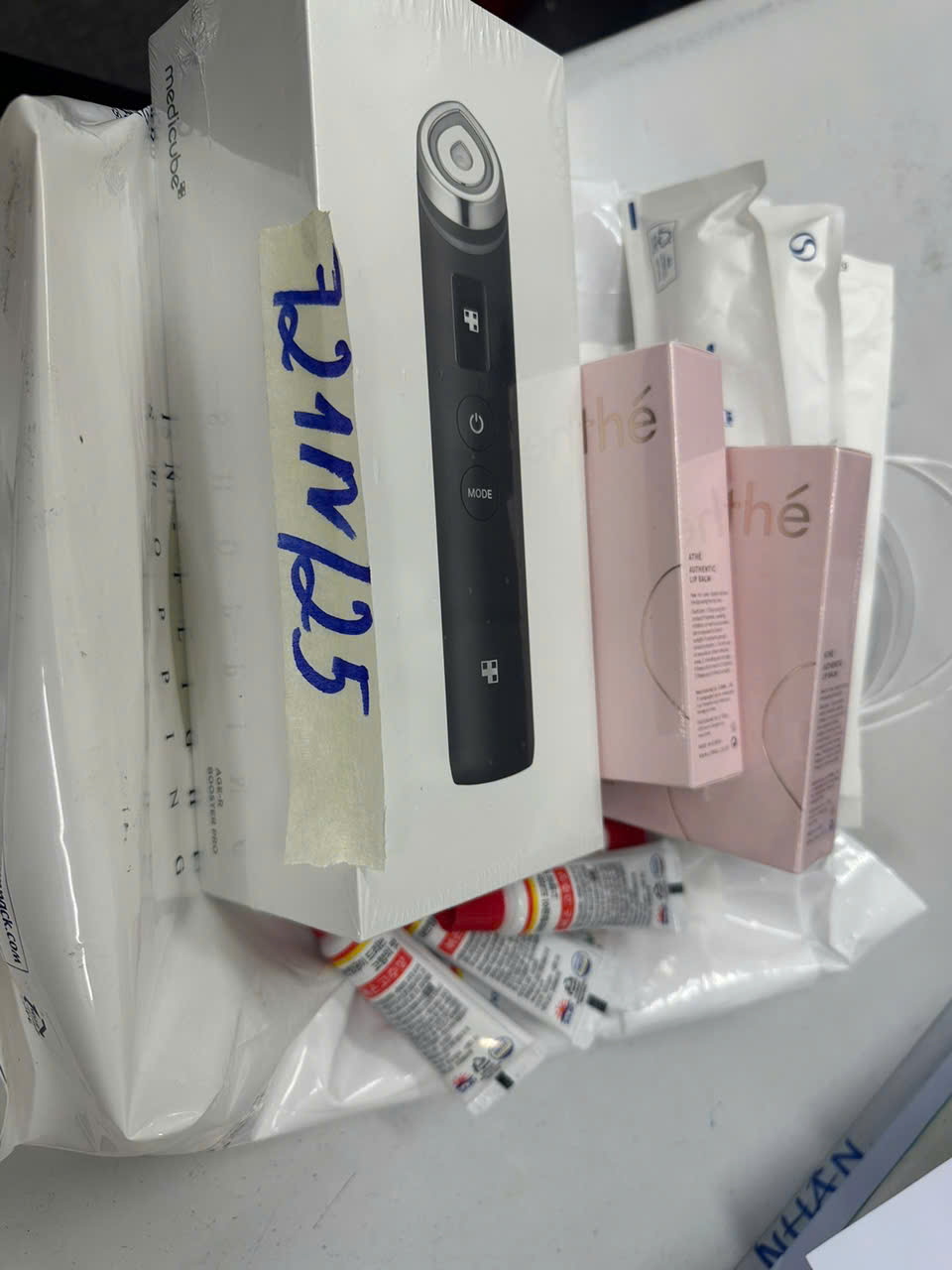 Ngày tiếp nhận: 20/4/2025 Mã hồ sơ: 721N2025 Mô tả: 01 túi trắng có đồ cá nhân, mỹ phẩm, 01 máy medicube chưa qua sử dụng. |