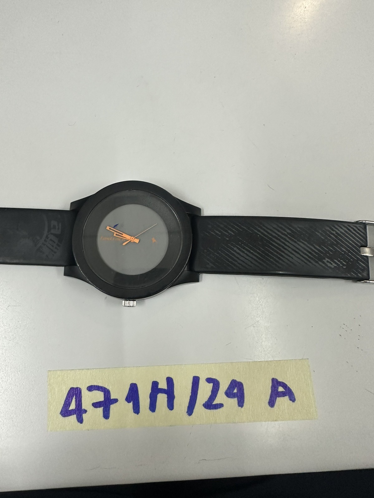 Ngày tiếp nhận: 22/03/2024 đen mặt hình tròn bằng kim loại in logo FASTRASCK, dây đeo bằng cao su. |
