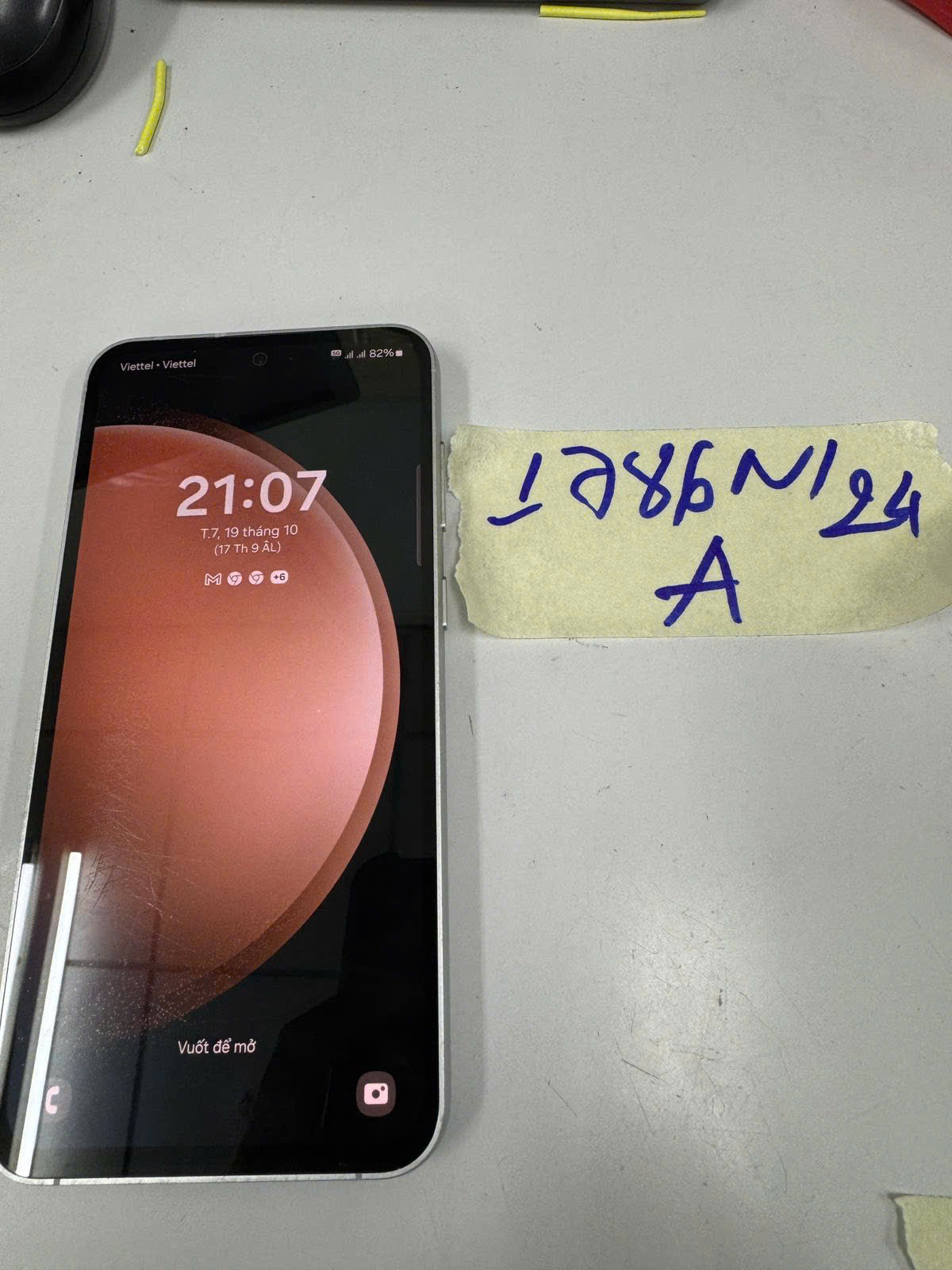 Ngày tiếp nhận: 19/10/2024 Mã hồ sơ: 1786N2024A Mô tả: 01 điện thoại màu trắng ghi chữ SAMSUNG. |