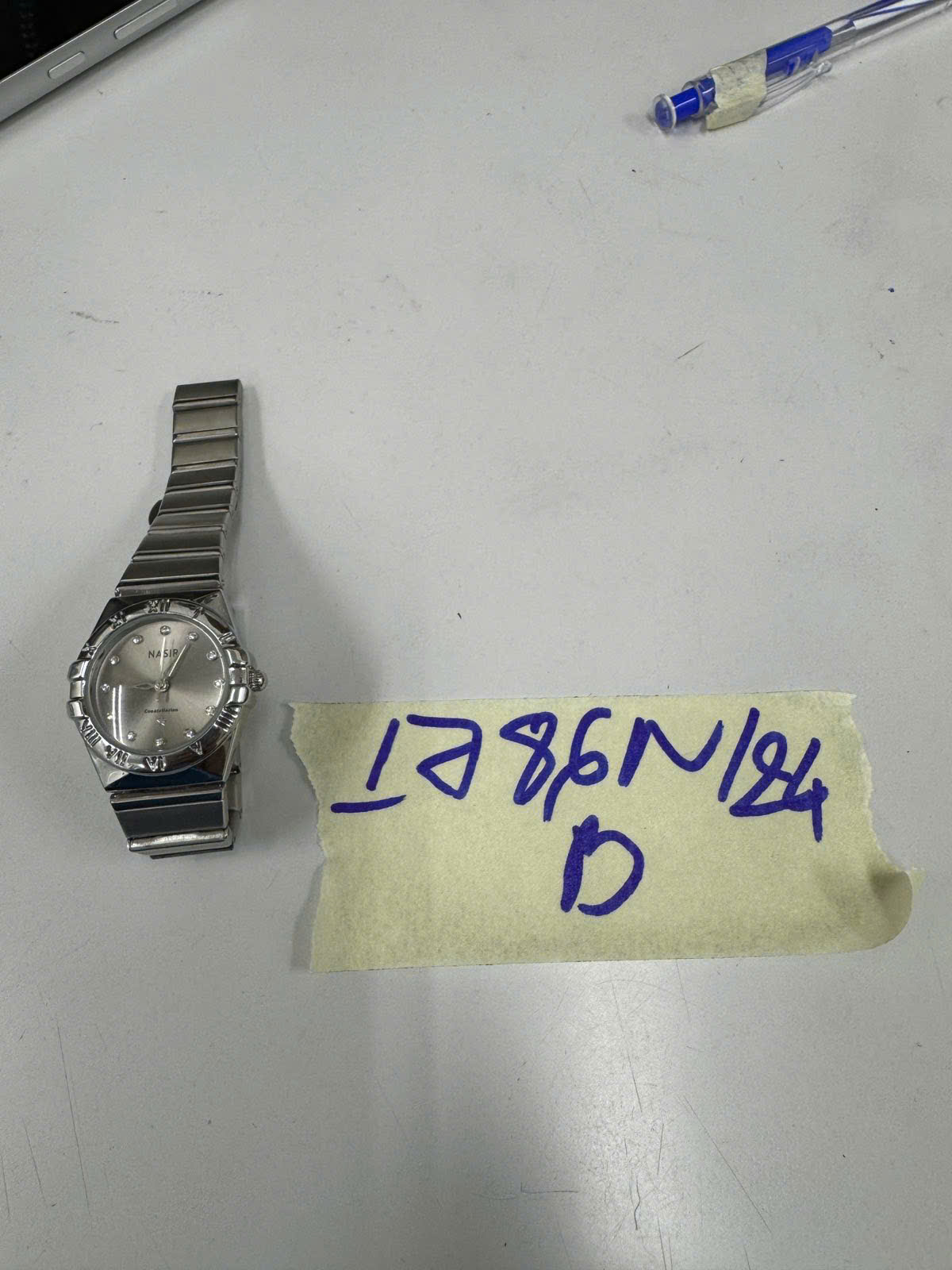 Ngày tiếp nhận: 19/10/2024 Mã hồ sơ: 1786N2024B Mô tả: 01 đồng hồ KL mặt tròn màu trắng có chữ NASIR. |