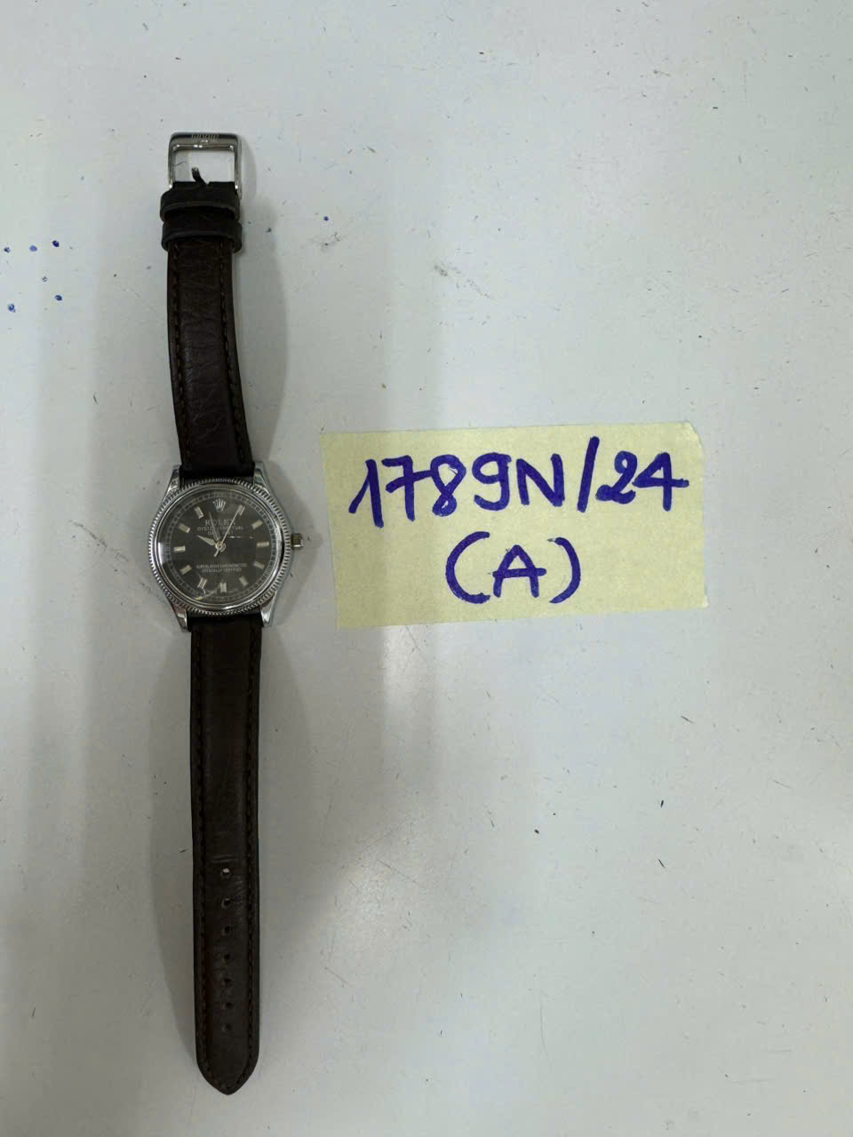 Ngày tiếp nhận: 21/10/2024 Mã hồ sơ: 1789N2024A Mô tả: 01 Đồng hồ khắc logo chữ ROLEX, mặt màu nâu, dây da màu nâu. |