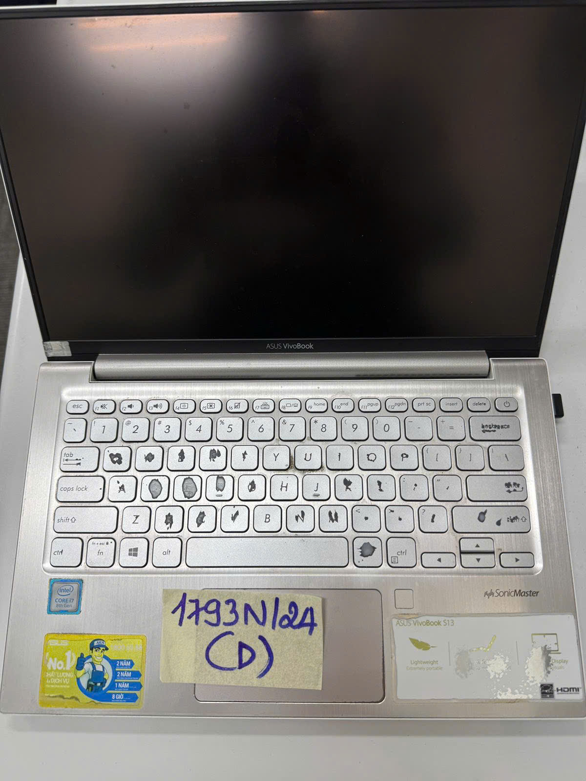 Ngày tiếp nhận: 21/10/2024 Mã hồ sơ: 1793N2024D Mô tả: 01 laptop notebook có hiệu "ASUS" màu bạc model: S330U. |