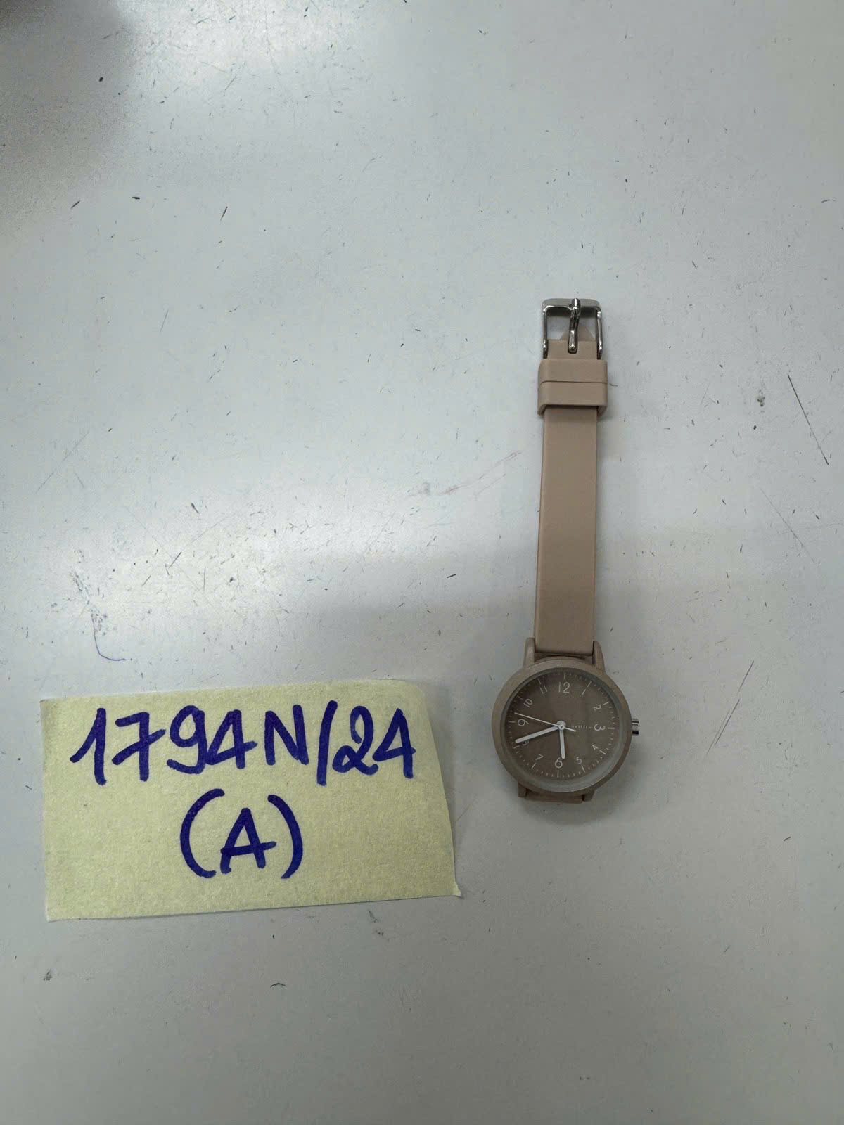 Ngày tiếp nhận: 21/10/2024 Mã hồ sơ: 1794N2024A Mô tả: 01 Đồng hồ đeo tay Mattito dây đeo nhựa màu xám. |