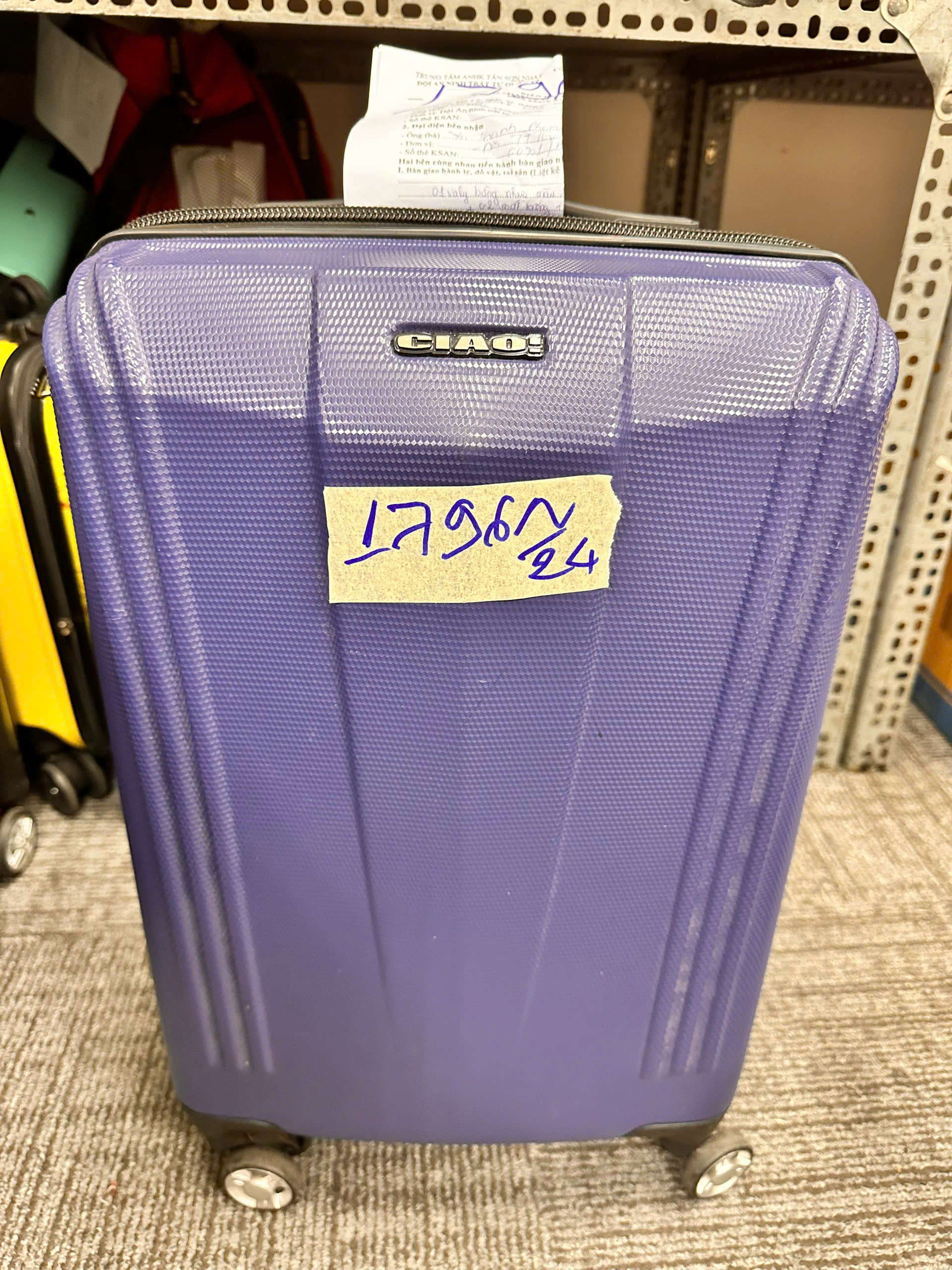 Ngày tiếp nhận: 21/10/2024 Mã hồ sơ: 1794N2024C Mô tả: 01 Vali màu vàng có in hình con vịt bên trong chỉ có quần áo cũ, vali bị bể ở gần bánh xe. |