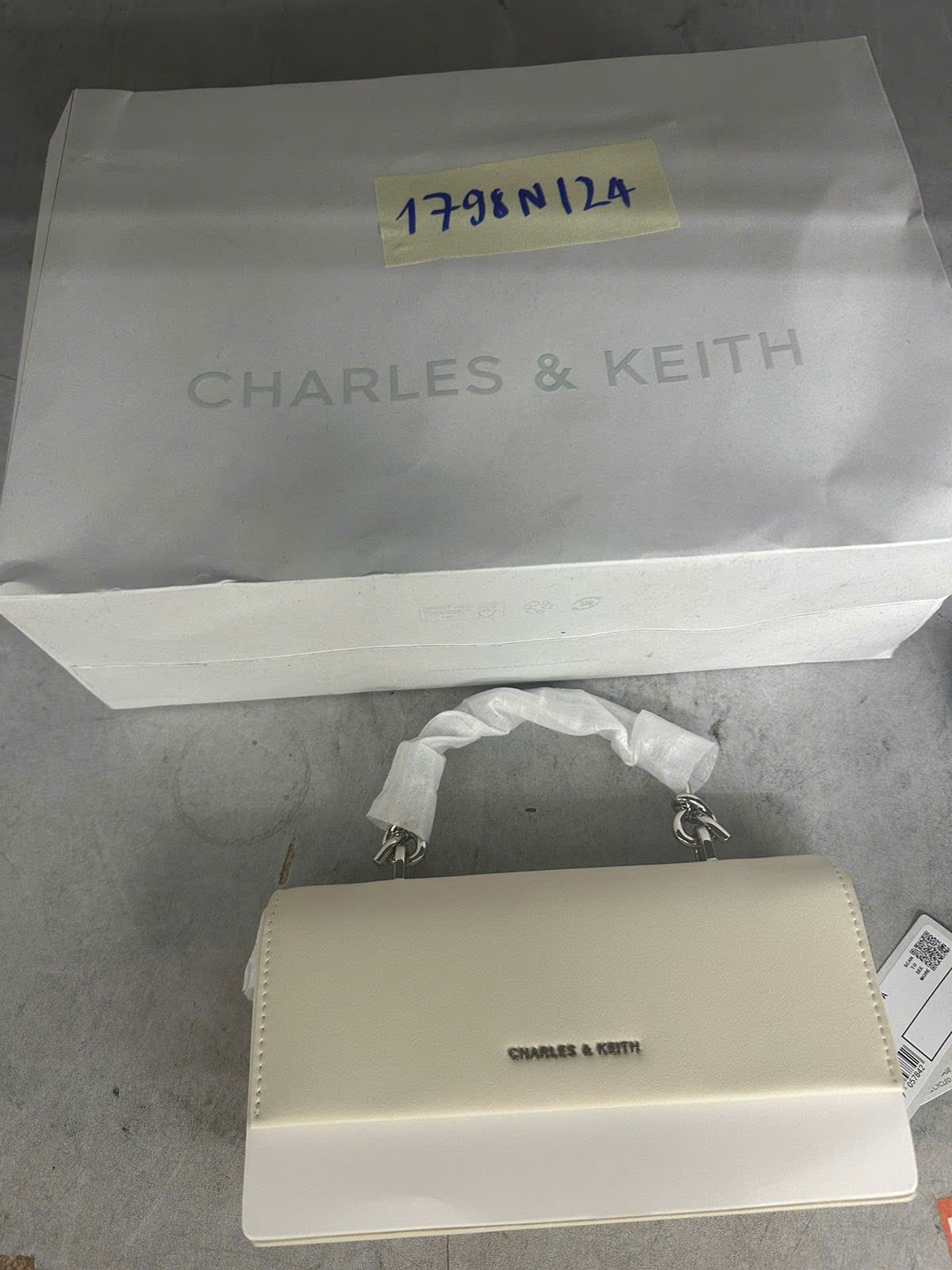 Ngày tiếp nhận: 21/10/2024 Mã hồ sơ: 1798N2024 Mô tả: 01 túi giấy màu trắng xách tay bên trong có 01 ví nữ màu kem hiệu CHARLES & KEITH chưa qua sử dụng. |