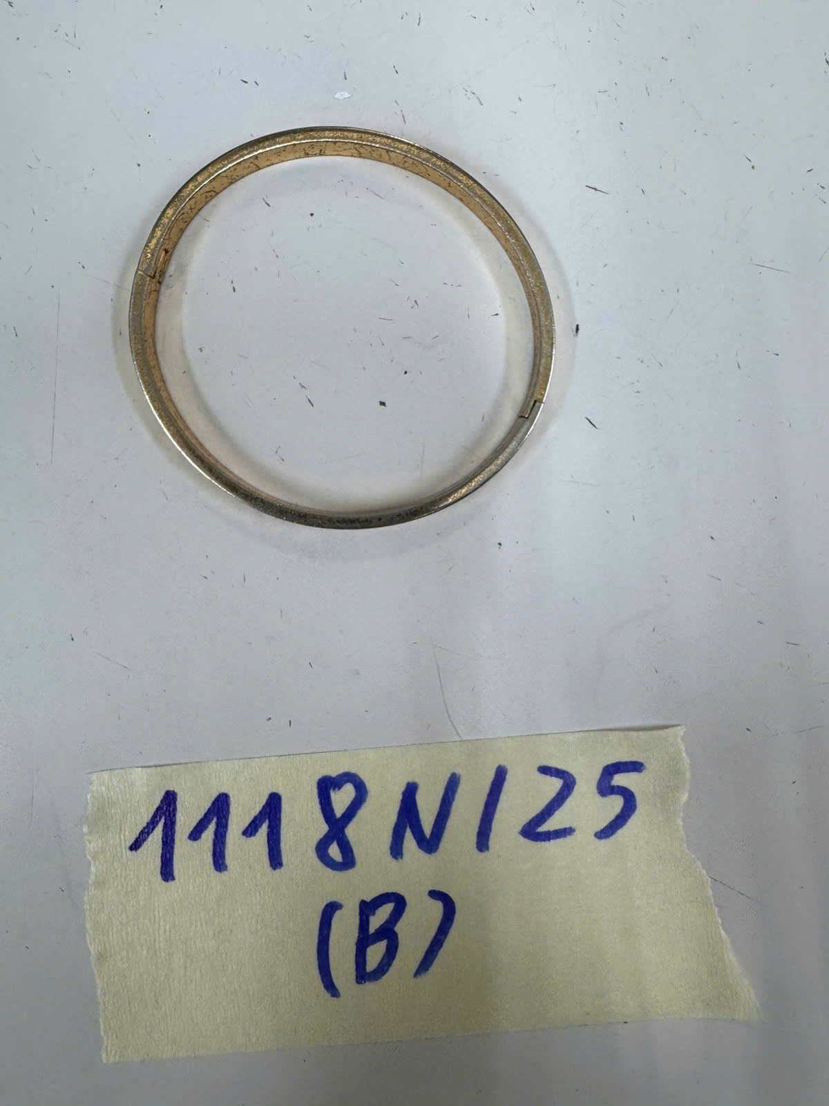 Ngày tiếp nhận: 19/6/2025 Mã hồ sơ: 1118N2025B Mô tả: 01 vòng tay kim loại màu vàng không rõ hiệu. |
