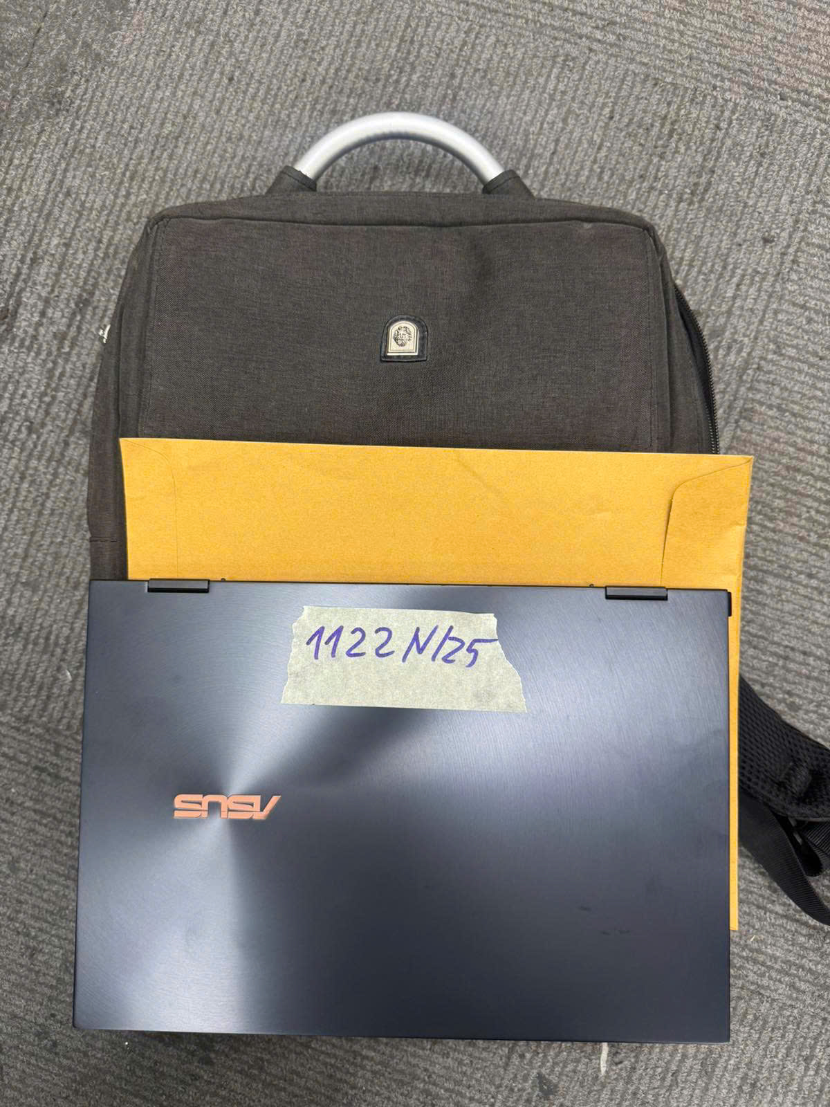Ngày tiếp nhận: 19/6/2025 Mã hồ sơ: 1122N2025 Mô tả: 01 túi chống sốc vải màu xám đen 01 laptop màu đen có chữ ASUS + sạc, giấy tờ visa tên TRAN XI. |