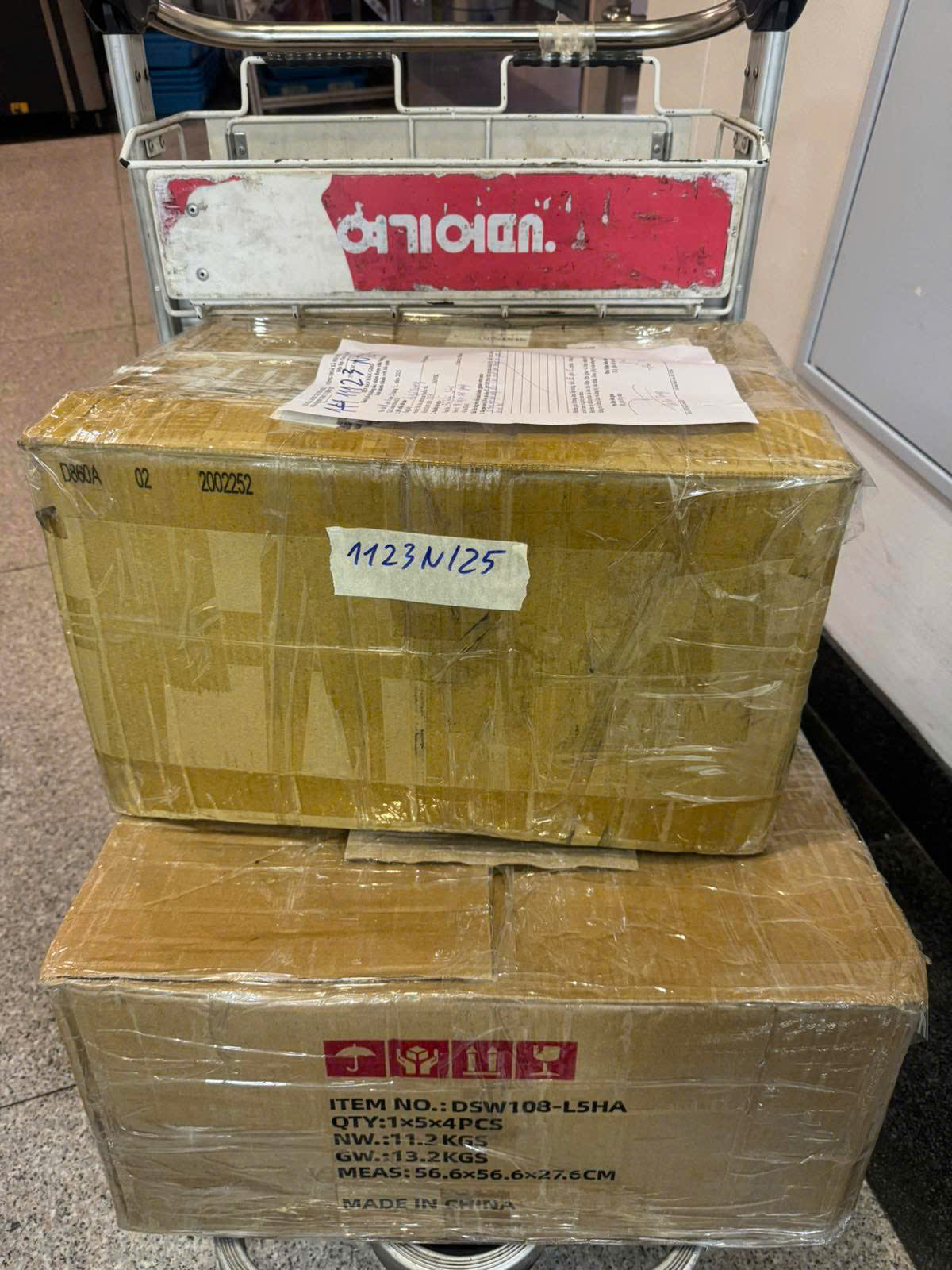 Ngày tiếp nhận: 19/6/2025 Mã hồ sơ: 1123N2025 Mô tả: 02 thùng nilong quấn băng keo có gạo, bánh kẹo. |