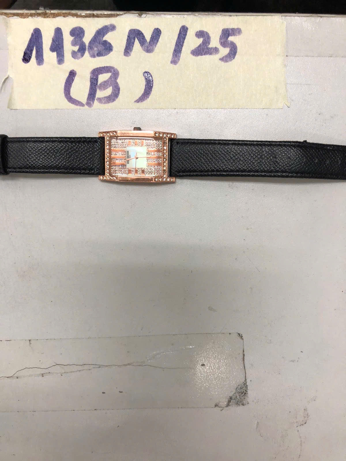 Ngày tiếp nhận: 21/6/2025 Mã hồ sơ: 1136N2025B Mô tả: 01 đồng hồ kim loại hình chữ nhật có chữ HERMESS PARIS dây bằng da màu đen có khắc chữ HERMESS CENUINE LEATHER. |