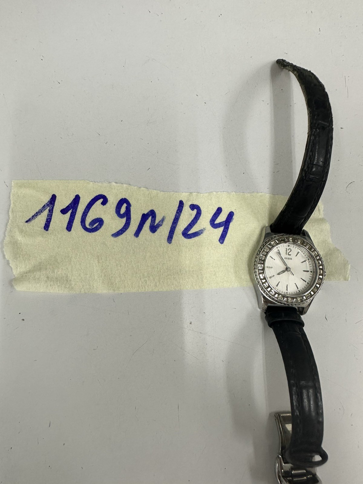 Ngày tiếp nhận: 20/7/2024 Mã hồ sơ: 1169N2024 Mô tả: 01 đồng hồ đeo tay mặt bằng kim loại màu trắng dây bằng da màu đen, mặt đồng hồ có dòng chữ GUESS,mặt sau có dãy số W0092L1. |