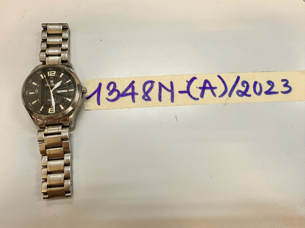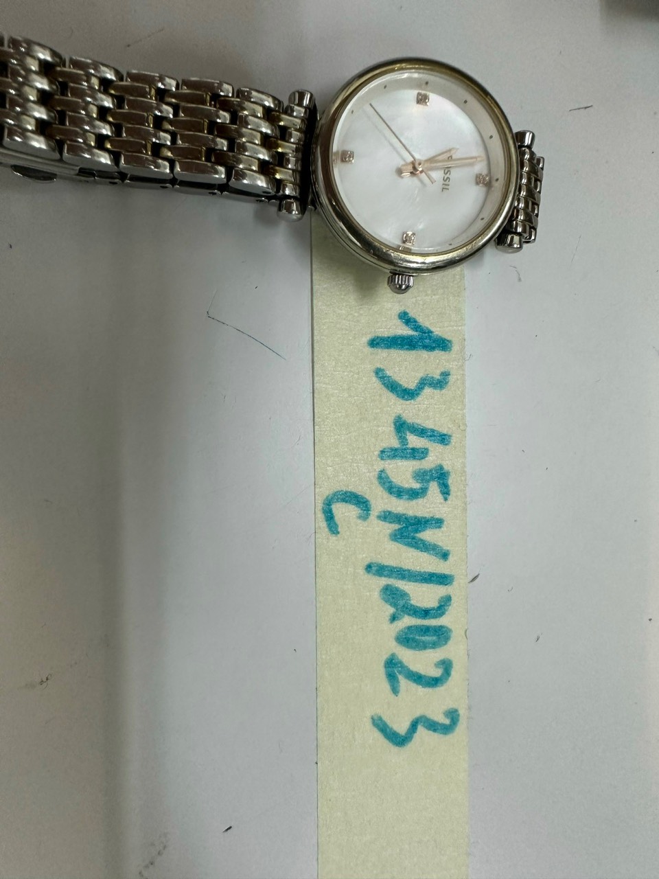 Ngày tiếp nhận: 20/9/2023 Mã hồ sơ: 1345N2023C Mô tả: 01 Đồng hồ kim loại màu trắng,có chử FOSILL. Vị trí: An ninh soi chiếu quốc nội |