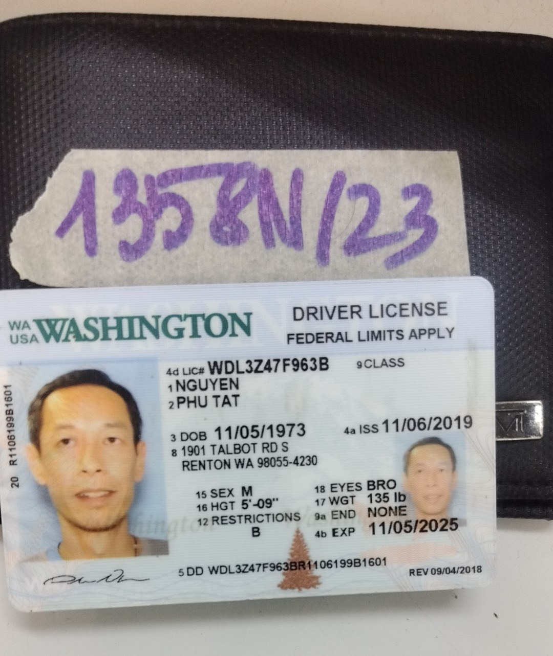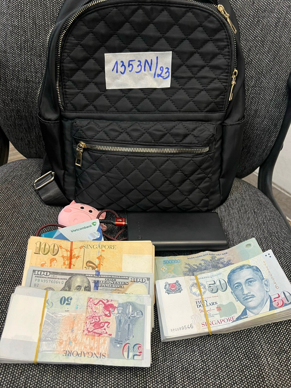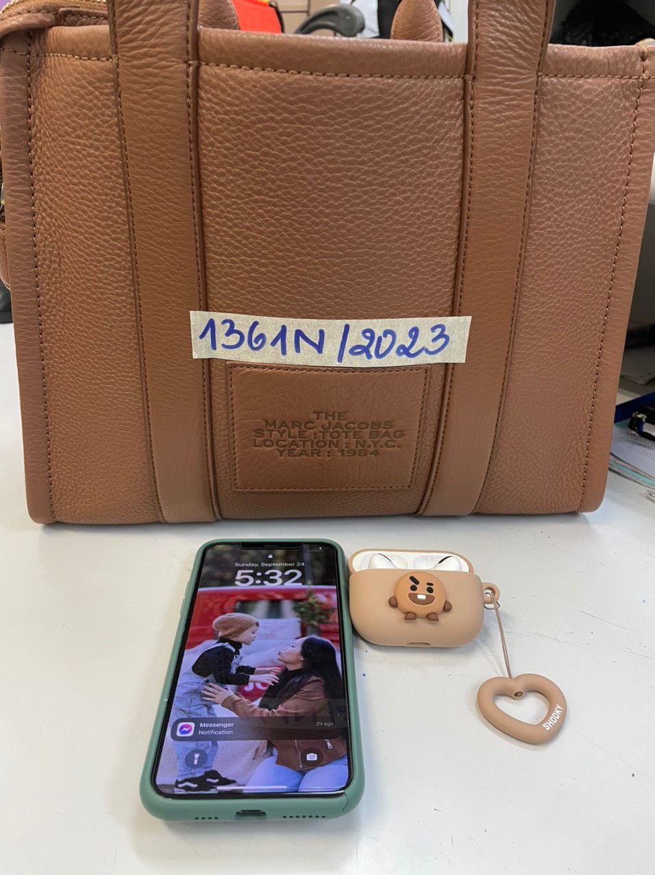 Ngày tiếp nhận: 21/9/2023 Mã hồ sơ: 1350N2023 Mô tả: 01 áo khoác bằng vải màu trắng bên trong có: 01 điện thoại iPhone có 02 camera, mặt trước và sau điện thoại có nhiều vết nứt, đã sd, ốp lưng nhựa màu trắng, 01 bằng lái xe tên Huong T Dang, 03 cây son môi cũ, 01 sạc + dây. Vị trí: An ninh trật tự quốc tế |