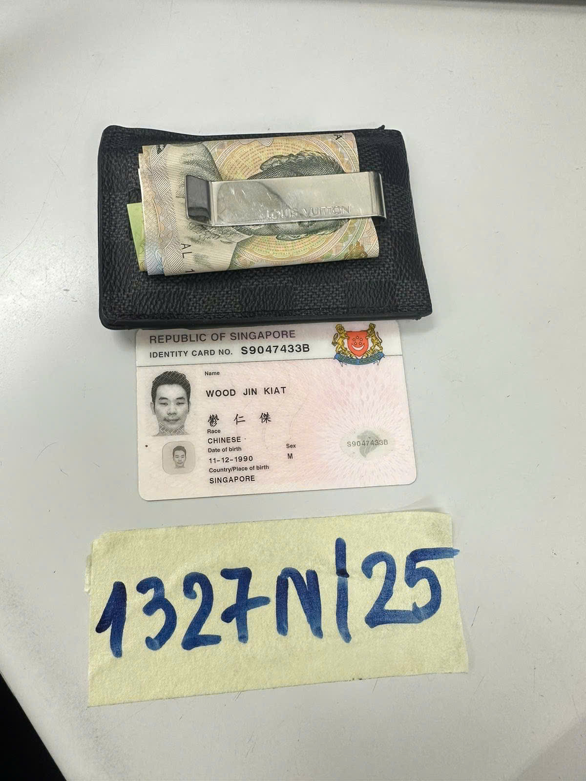 Ngày tiếp nhận: 20/7/2025 Mã hồ sơ: 1327N2025 Mô tả: 01 ví da màu đen có chữ Louis Vuitton bên trong: 134000 VNĐ, thẻ ngân hàng và giấy tờ cá nhân tên WOOD JIN KIAT. |