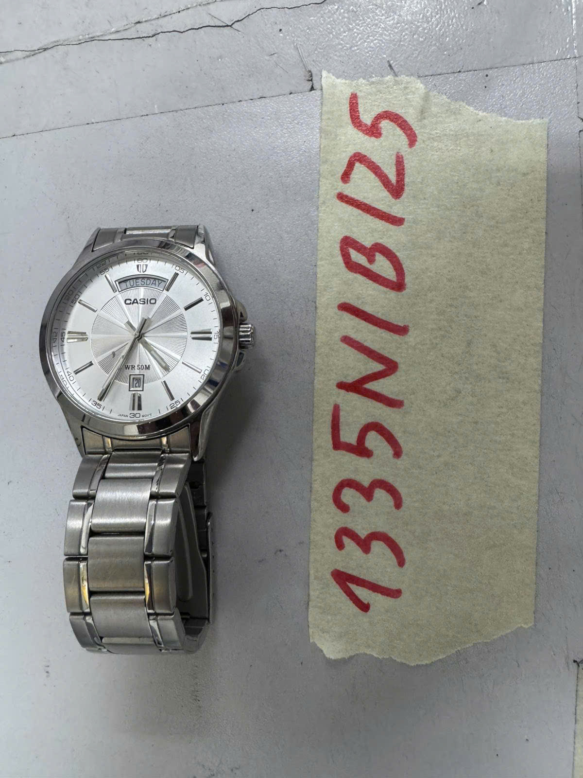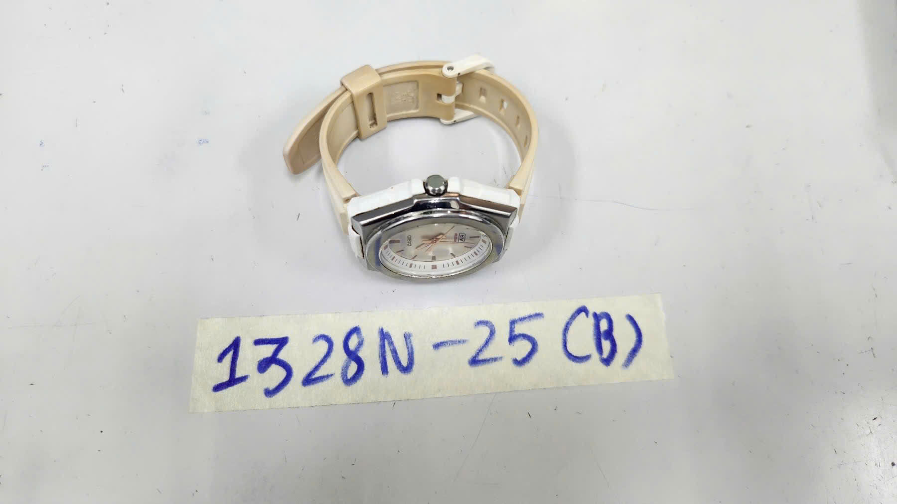 Ngày tiếp nhận: 20/7/2025 Mã hồ sơ: 1328N2025B Mô tả: 01 đồng hồ có chữ Casio, dây trắng, mặt tròn. |