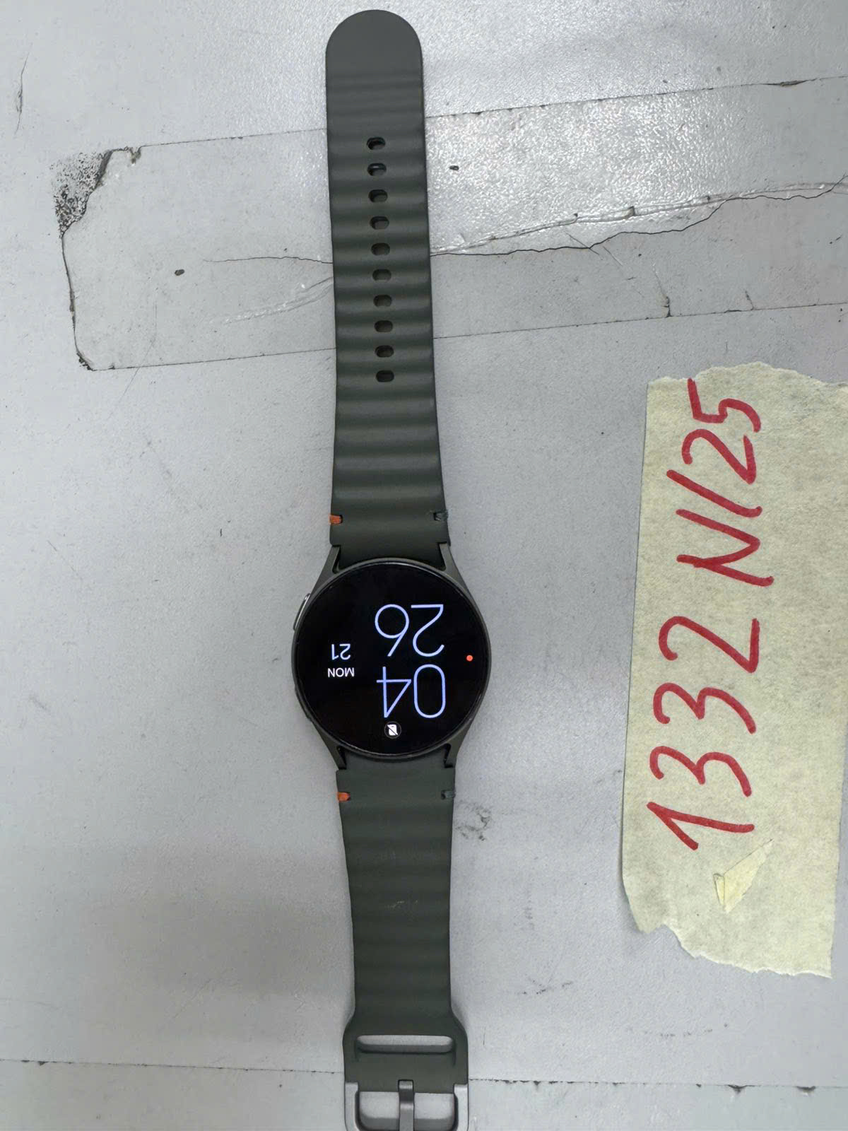 Ngày tiếp nhận: 21/7/2025 Mã hồ sơ: 1332N2025 Mô tả: 01 đồng hồ thông minh SamSung mặt tròn màu xám, có dây đeo cao su màu xám. Serial: RFAXA01R1GZA.Vị trí: An ninh soi chiếu quốc tế |