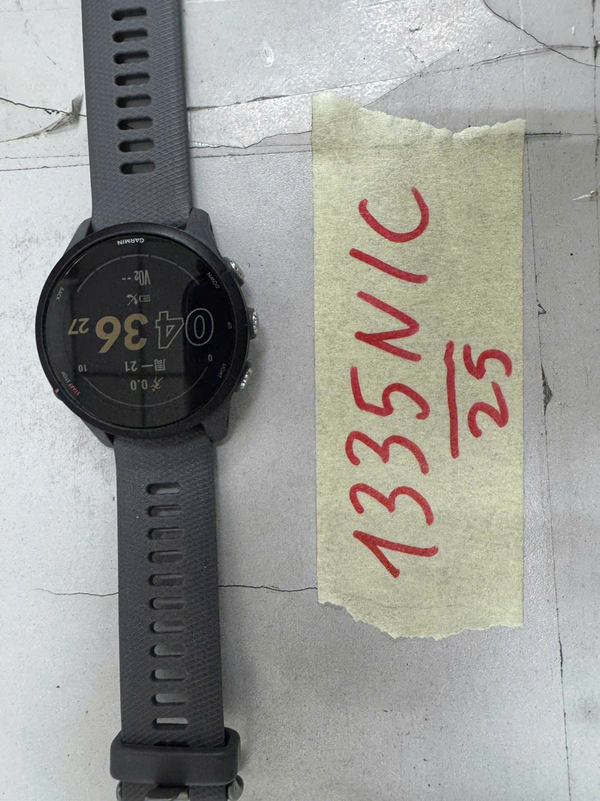 Ngày tiếp nhận: 21/7/2025 Mã hồ sơ: 1335N2025C Mô tả: 01 đồng hồ GARMIN mặt tròn dây nhựa màu xám.Vị trí: An ninh soi chiếu quốc tế |