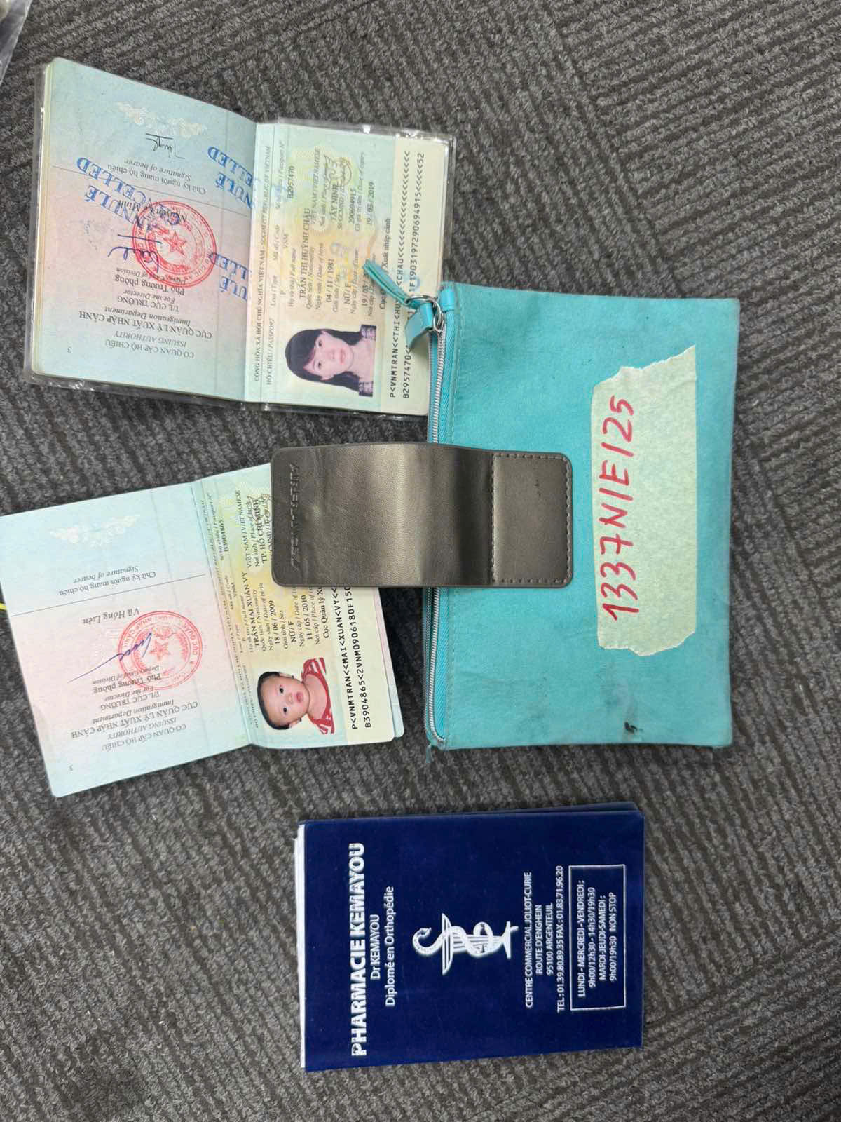 Ngày tiếp nhận: 21/7/2025 Mã hồ sơ: 1337N2025E Mô tả: 01 túi cầm tay màu xanh có in chữ AIRFRANCE bên trong: 01 hộ chiếu tên TRẦN THỊ HUỲNH CHÂU và 01 hộ chiếu tên TRẦN MAI XUÂN VY. |