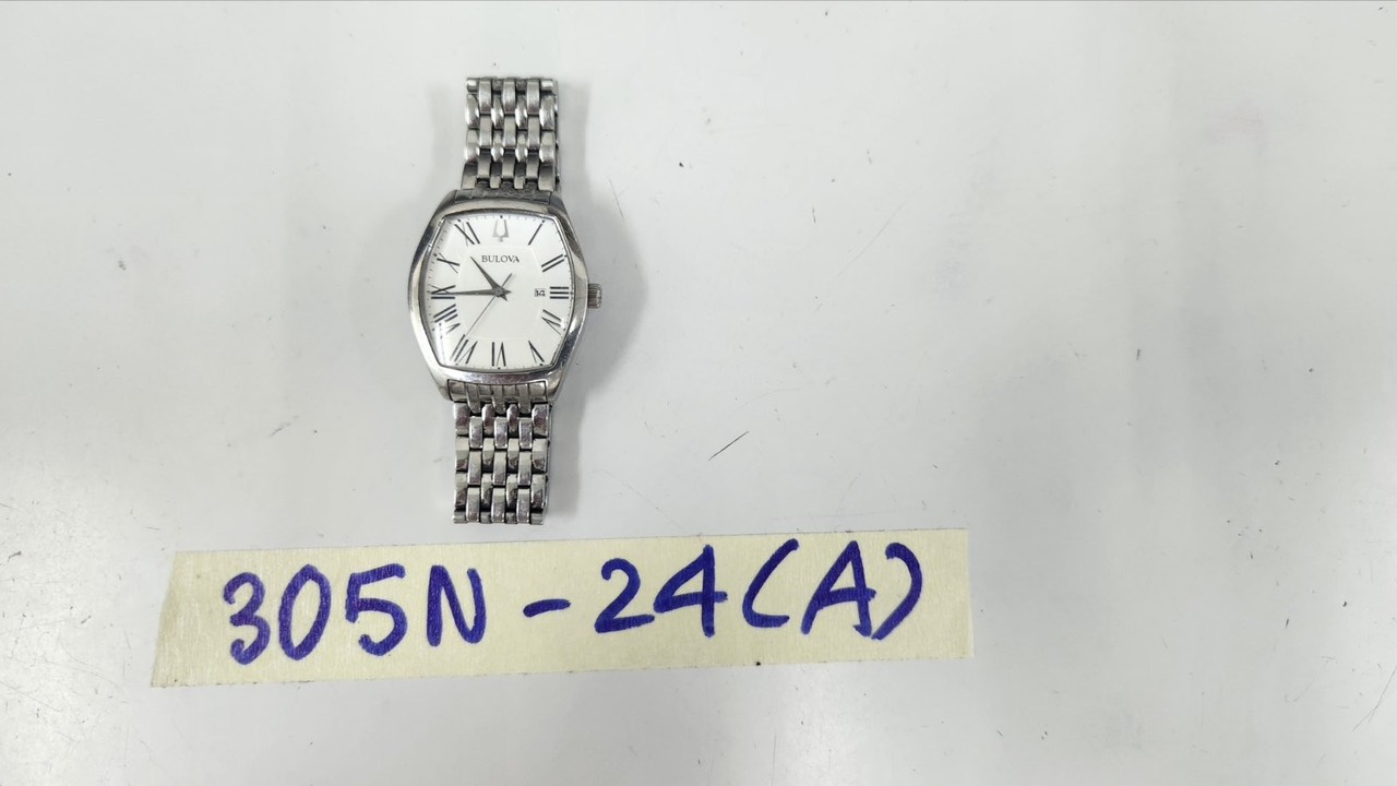 Ngày tiếp nhận: 21/02/2024 Mã hồ sơ: 305N2024A Mô tả: 01 đồng hồ dây kim loại màu trắng có mặt màu bạc BULVOVA. Vị trí: An ninh soi chiếu quốc nội |