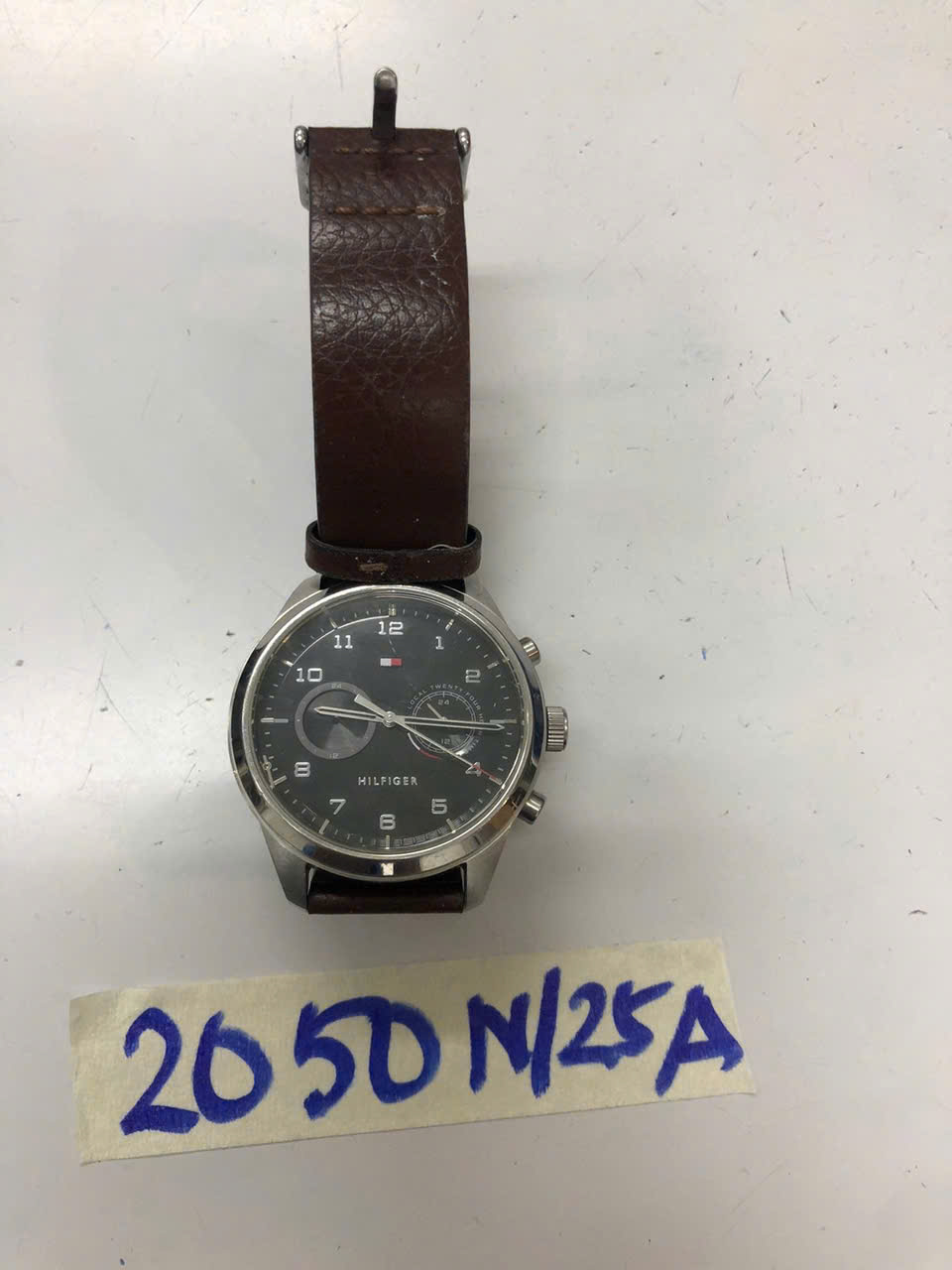 Ngày tiếp nhận: 22/11/2025 Mã hồ sơ: 2050N2025A Mô tả: 01 đồng hồ HILFIGER mặt tròn, dây da màu nâu. |