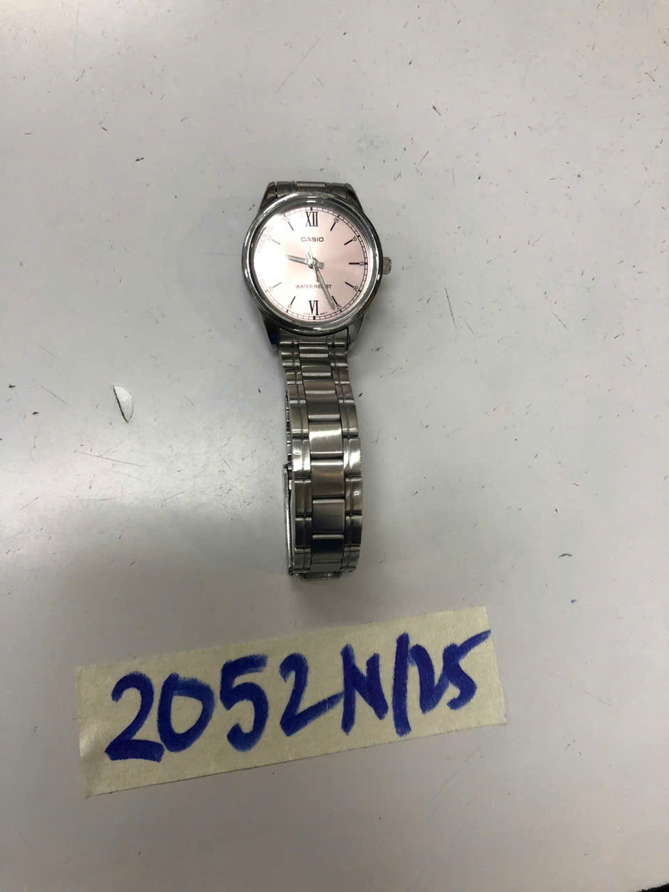 Ngày tiếp nhận: 22/11/2025 Mã hồ sơ: 2052N2025 Mô tả: 01 đồng hồ kim loại mặt tròn màu bạc hiệu CASIO, mặt sau có số 5361, dây đeo kim loại màu bạc. |