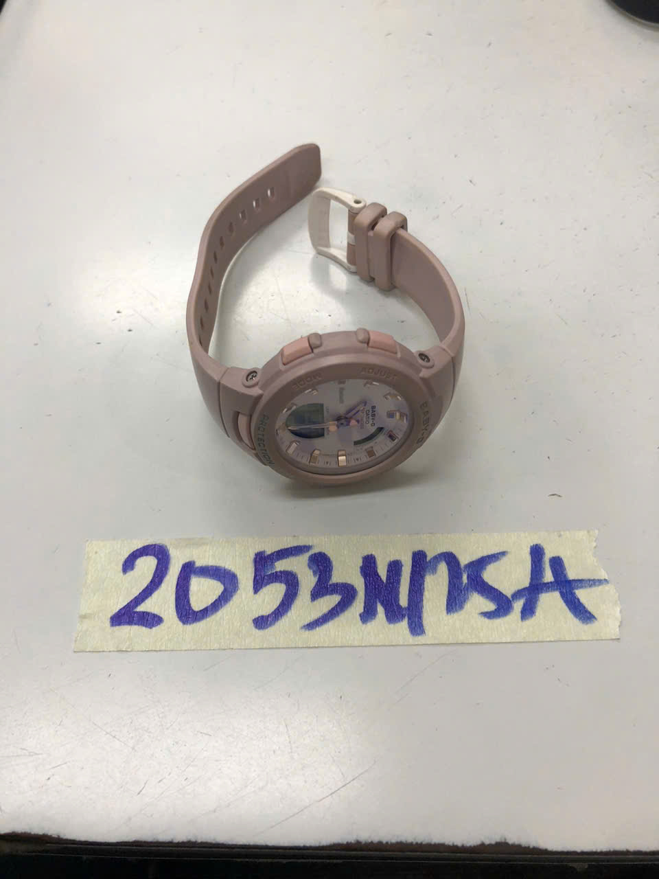 Ngày tiếp nhận: 22/11/2025 Mã hồ sơ: 2053N2025A Mô tả: 01 đồng hồ nhựa màu hồng, mặt đồng hồ hình tròn có logo chữ BABY-G CASIO. |