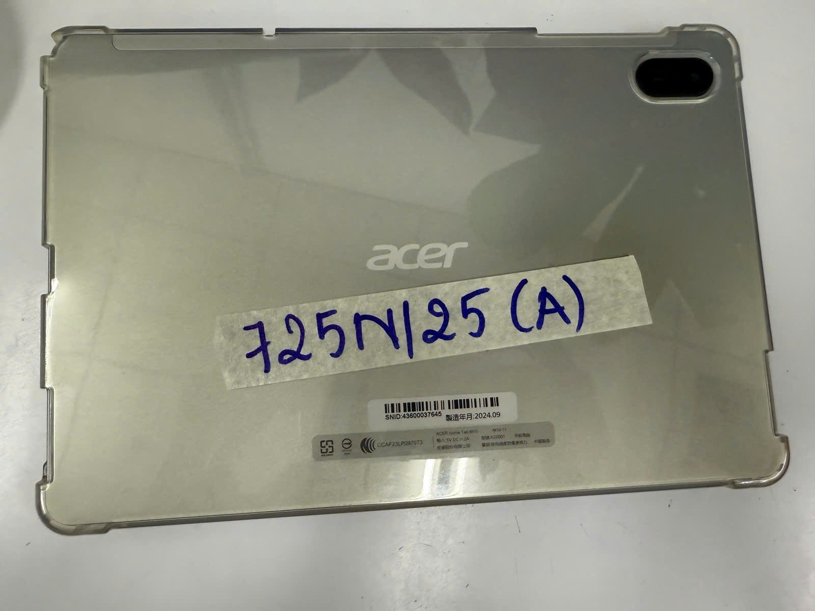 Ngày tiếp nhận: 21/4/2025 Mã hồ sơ: 725N2025A Mô tả: 01 máy tính bảng Acer xám, ốp lưng trong. |
