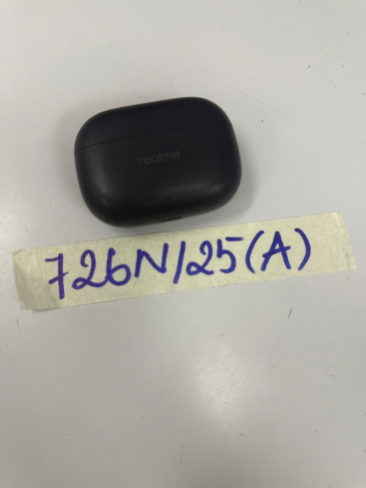 Ngày tiếp nhận: 21/4/2025 Mã hồ sơ: 726N2025A Mô tả: 01 bộ tai nghe không dây màu đen có logo chữ realme (01 cốc sạc, 02 tai nghe trái và phải). |