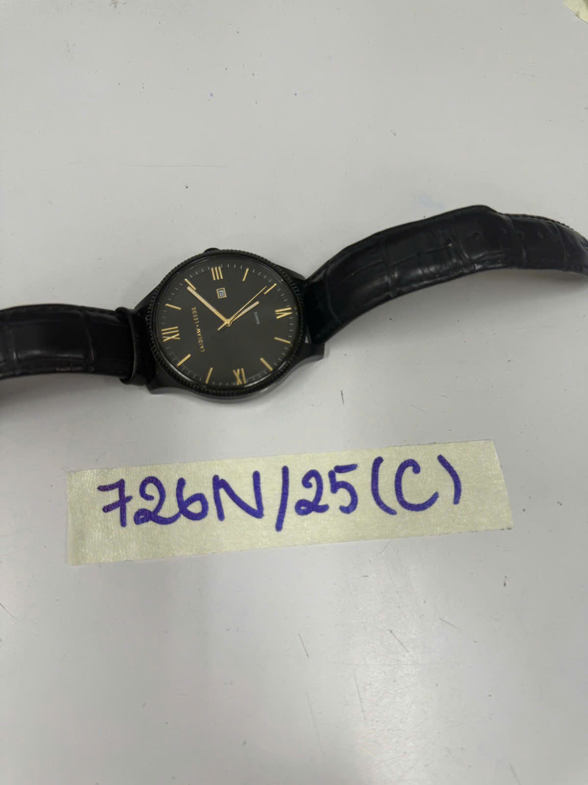 Ngày tiếp nhận: 21/4/2025 Mã hồ sơ: 726N2025C Mô tả: 01 đồng hồ đeo tay màu đen, mặt tròn chữ LAIDLAW + LEEDS, dây đeo bằng da. |