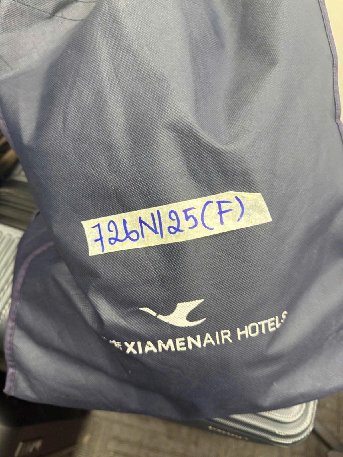 Ngày tiếp nhận: 21/4/2025 Mã hồ sơ: 726N2025F Mô tả: 01 túi vải xanh đen logo XIEMEN AIR HOTELS có vật dụng cá nhân. |