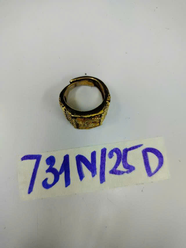 Ngày tiếp nhận: 22/4/2025 Mã hồ sơ: 731N2025I Mô tả: 01 vòng kim loại màu vàng. |