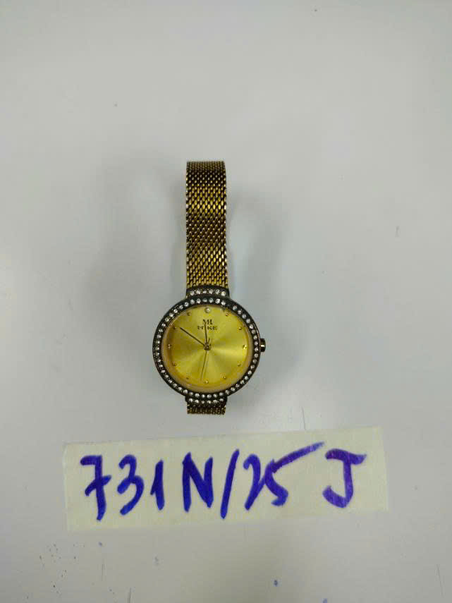 Ngày tiếp nhận: 22/4/2025 Mã hồ sơ: 731N2025J Mô tả: 01 Đồng hồ kim loại màu vàng hiệu KK(Mike). |