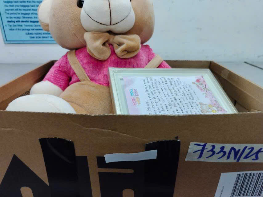 Ngày tiếp nhận: 22/4/2025 Mã hồ sơ: 733N2025 Mô tả: 01 túi giấy màu nâu có 01 gấu bông nâu qua sd, giấy tờ các loại. |
