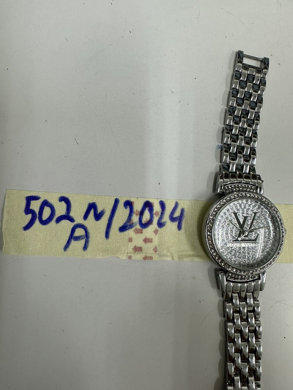 Ngày tiếp nhận: 25/03/2024 trắng LOUIS VUITTON, viền đính đá màu trắng, dây đeo kim loại màu trắng. |