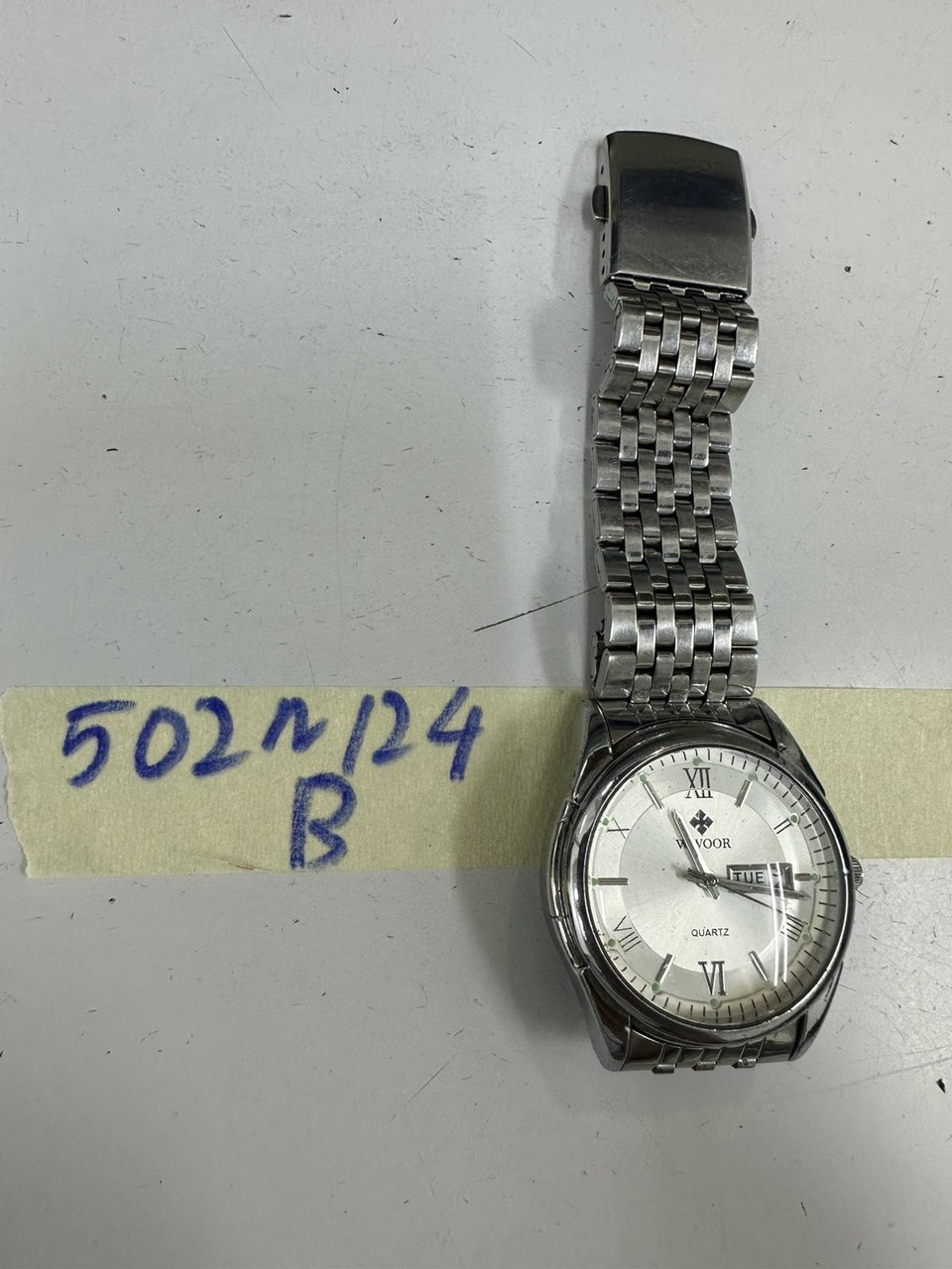 Ngày tiếp nhận: 25/03/2024 trắng có chữ WWOOR, dây đeo kim loại màu trắng. |