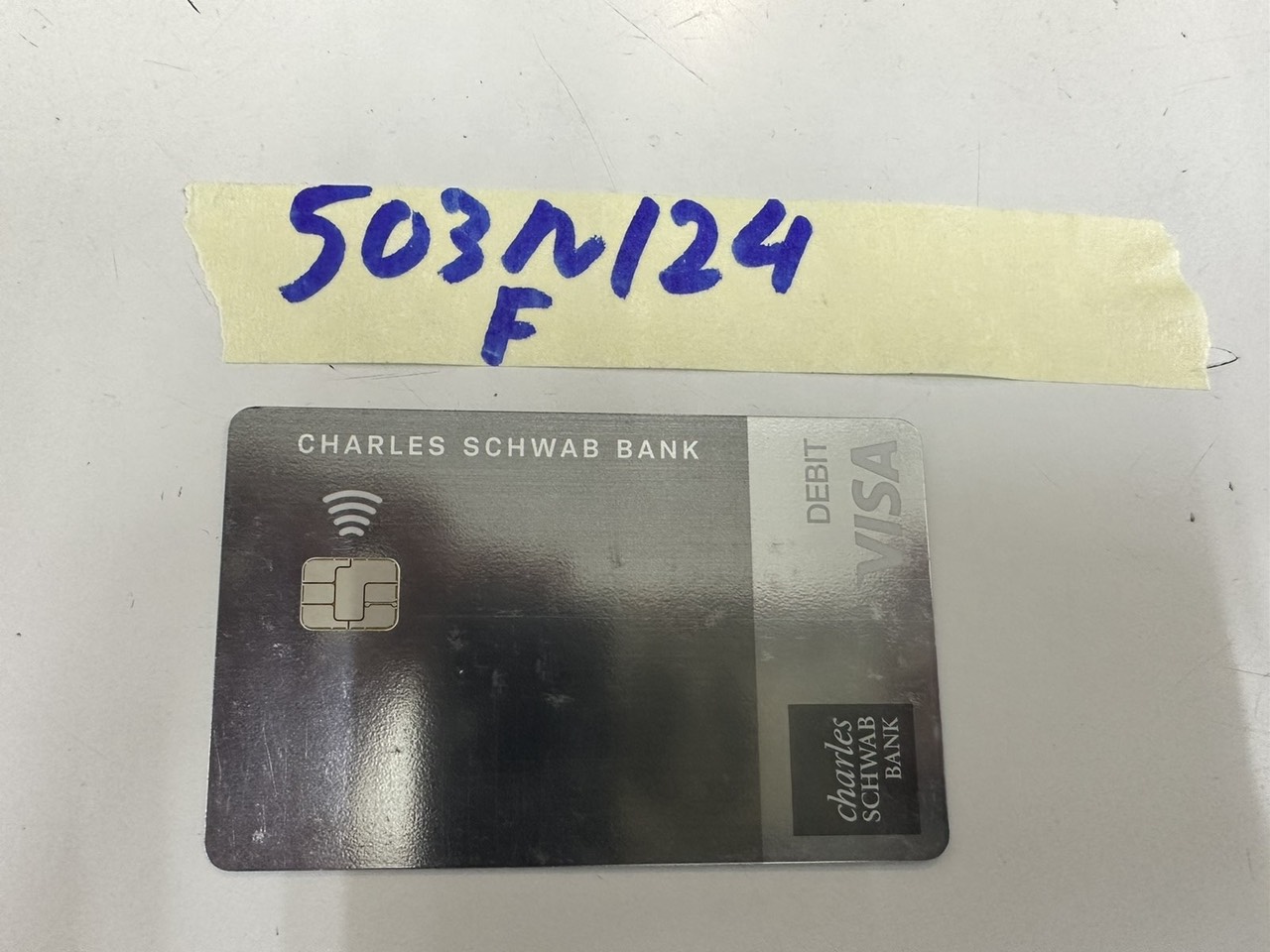 Ngày tiếp nhận: 26/03/2024 Mô tả: 01 thẻ visa CHARLES SCHWAB BANK đằng sau có chữ MARSHALL KESIG. |