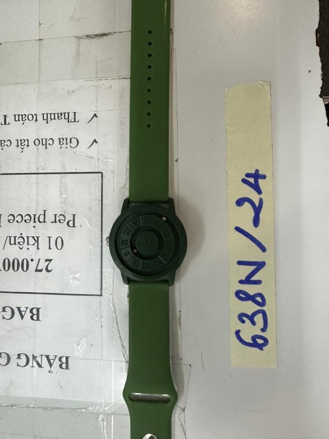 Ngày tiếp nhận: 23/4/2024 khắc chữ DOM, dây nhựa màu xanh lá cây đã qua sử dụng. |
