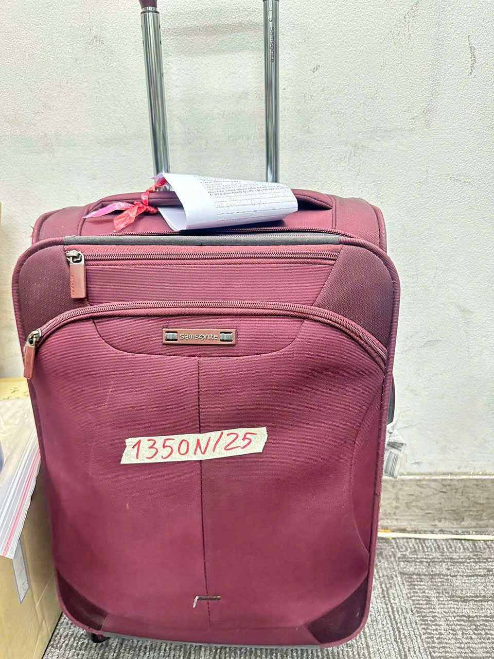 Ngày tiếp nhận: 24/7/2025 Mã hồ sơ: 1350N2025 Mô tả: 01 vali vải màu đỏ chứa 02 túi vải màu đen có quần áo cũ và đồ dùng cá nhân. |